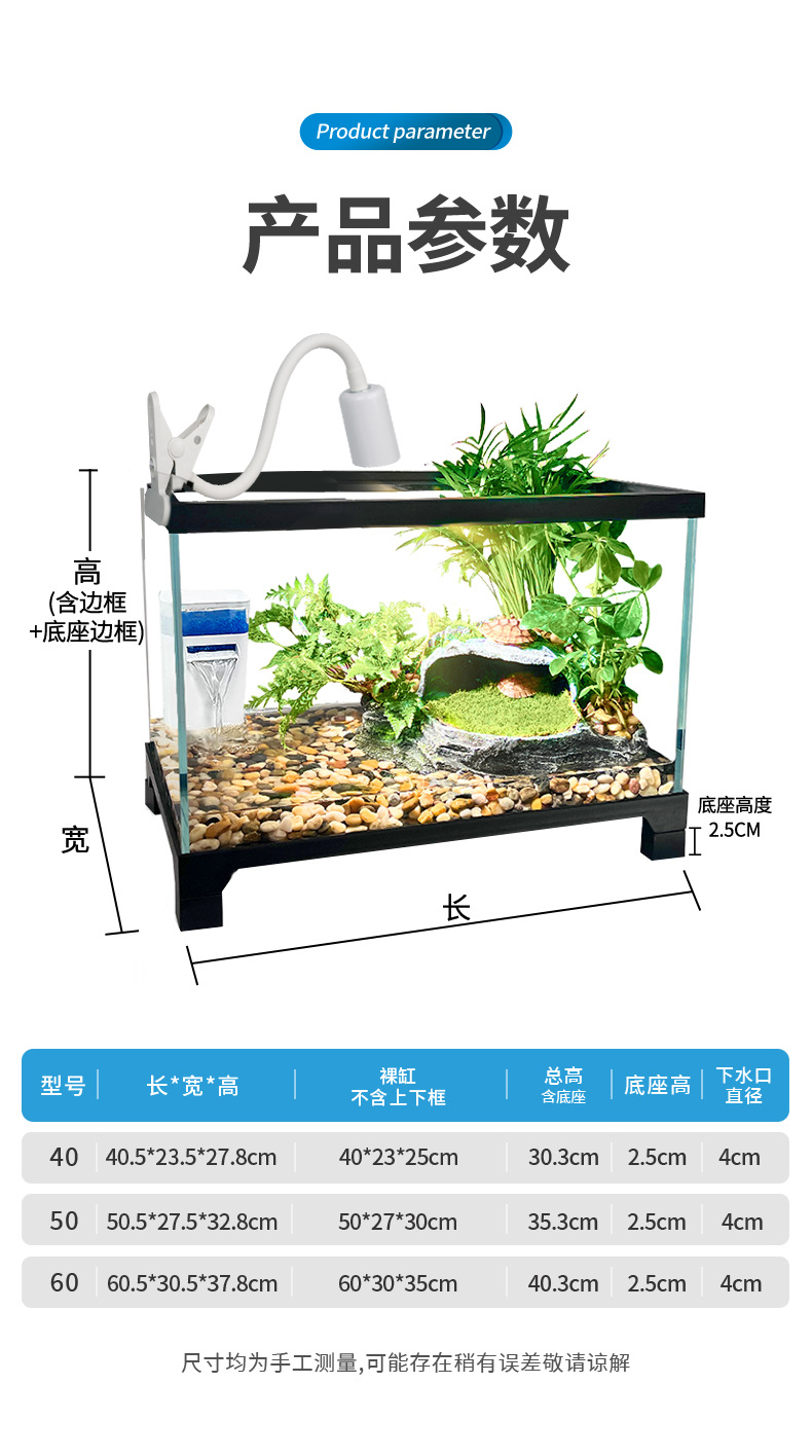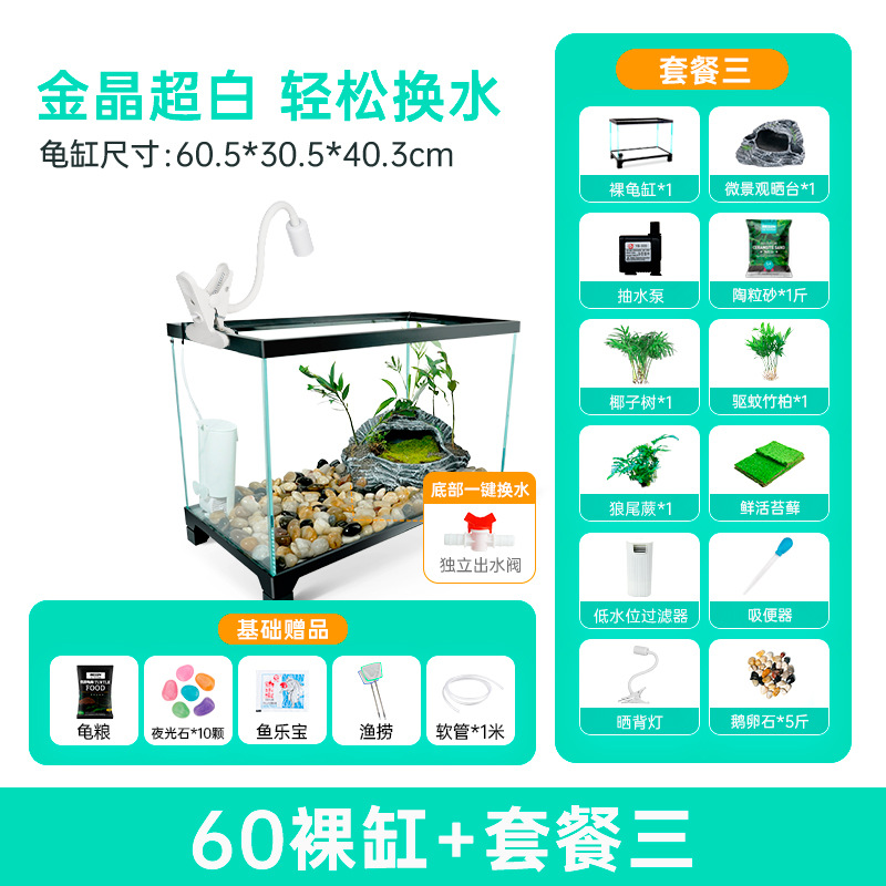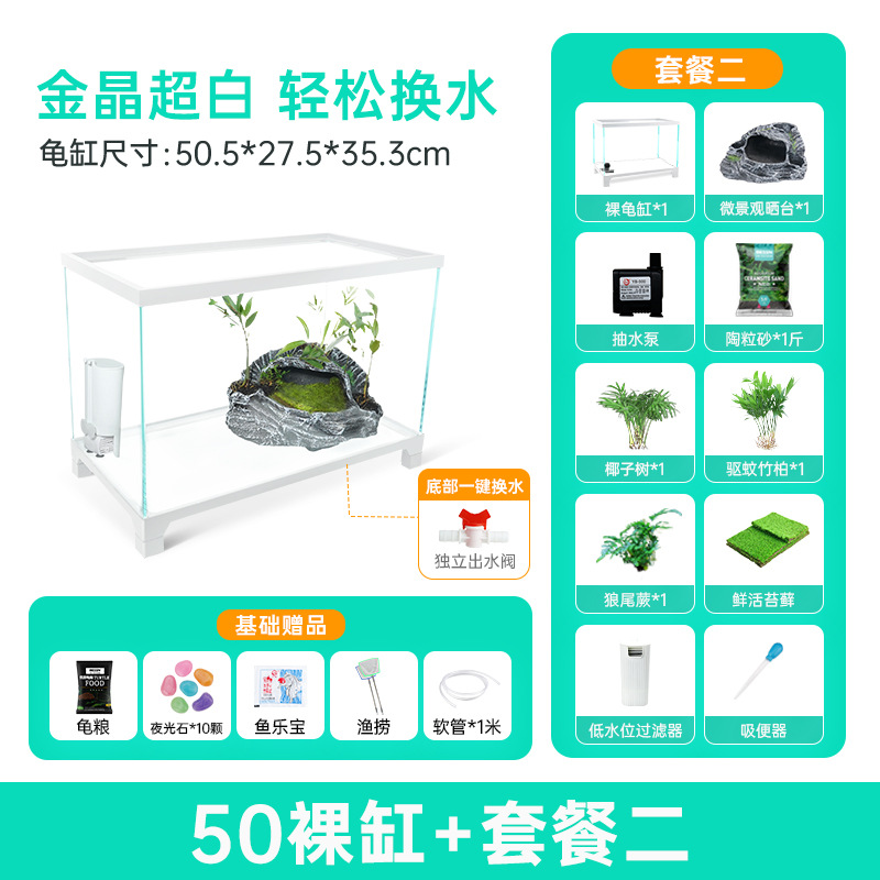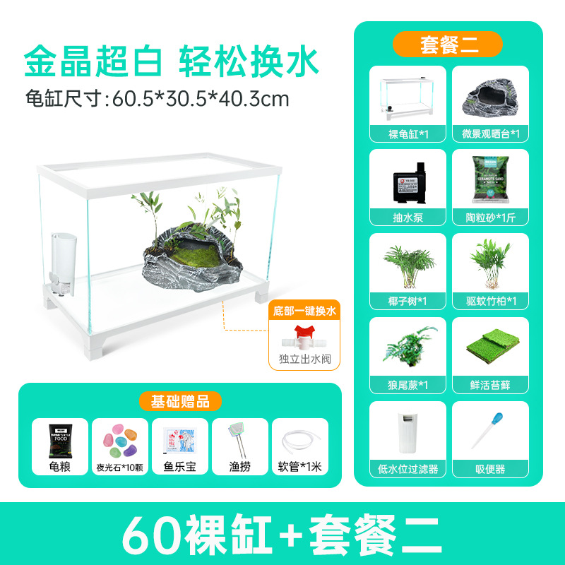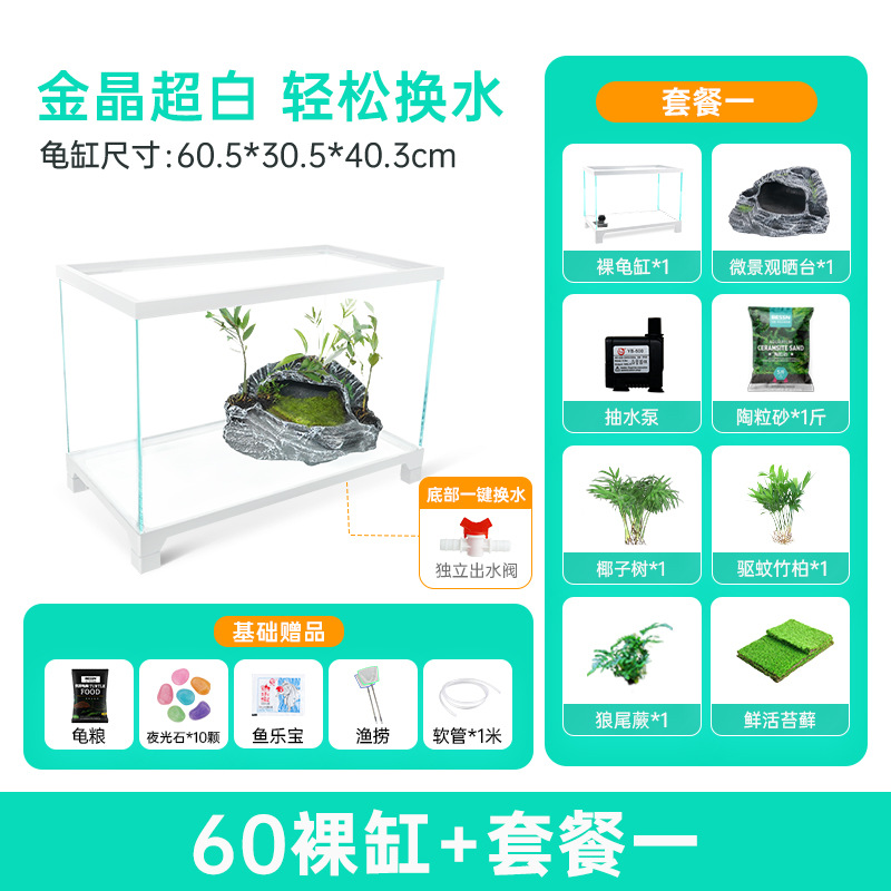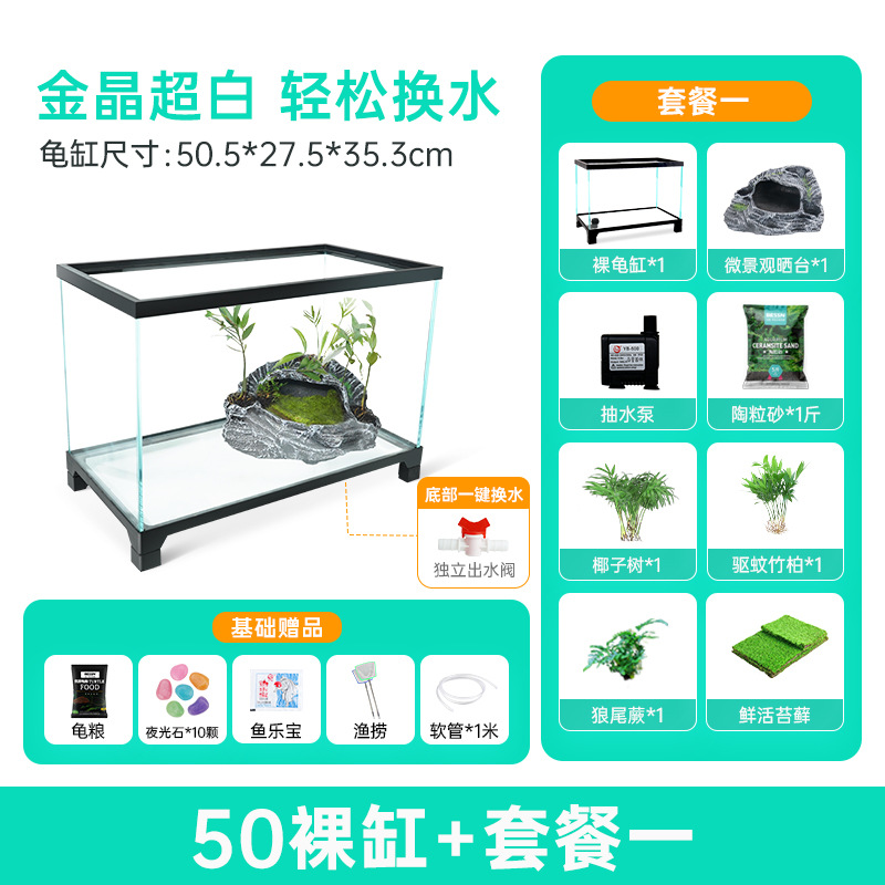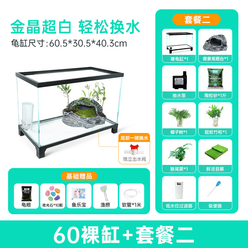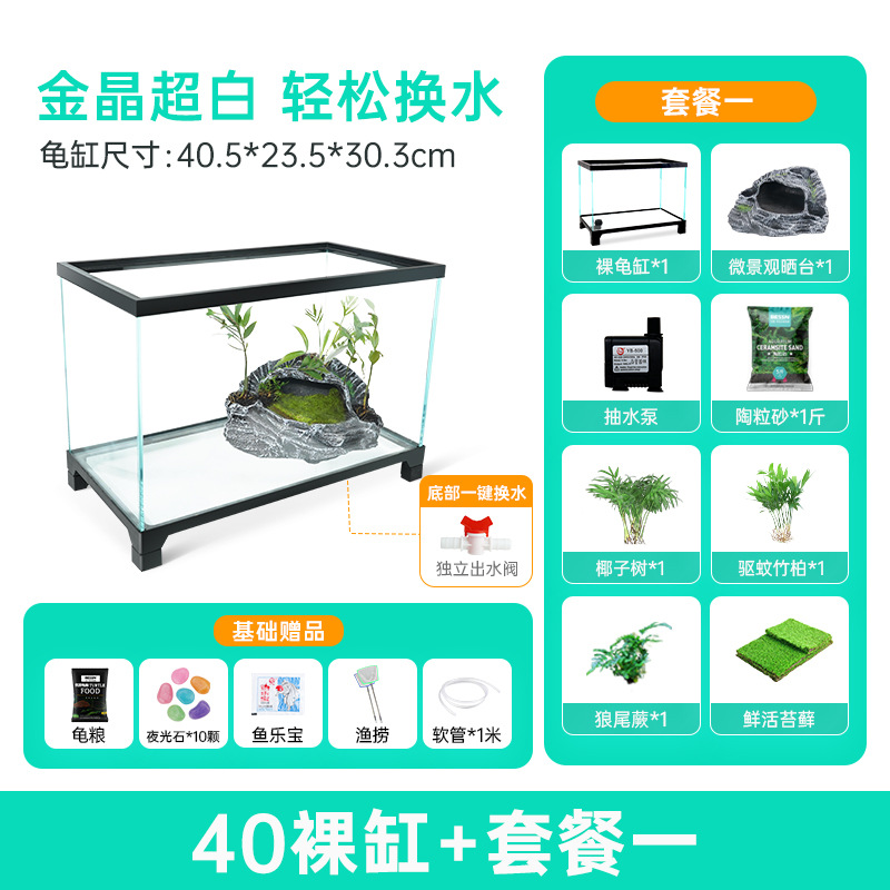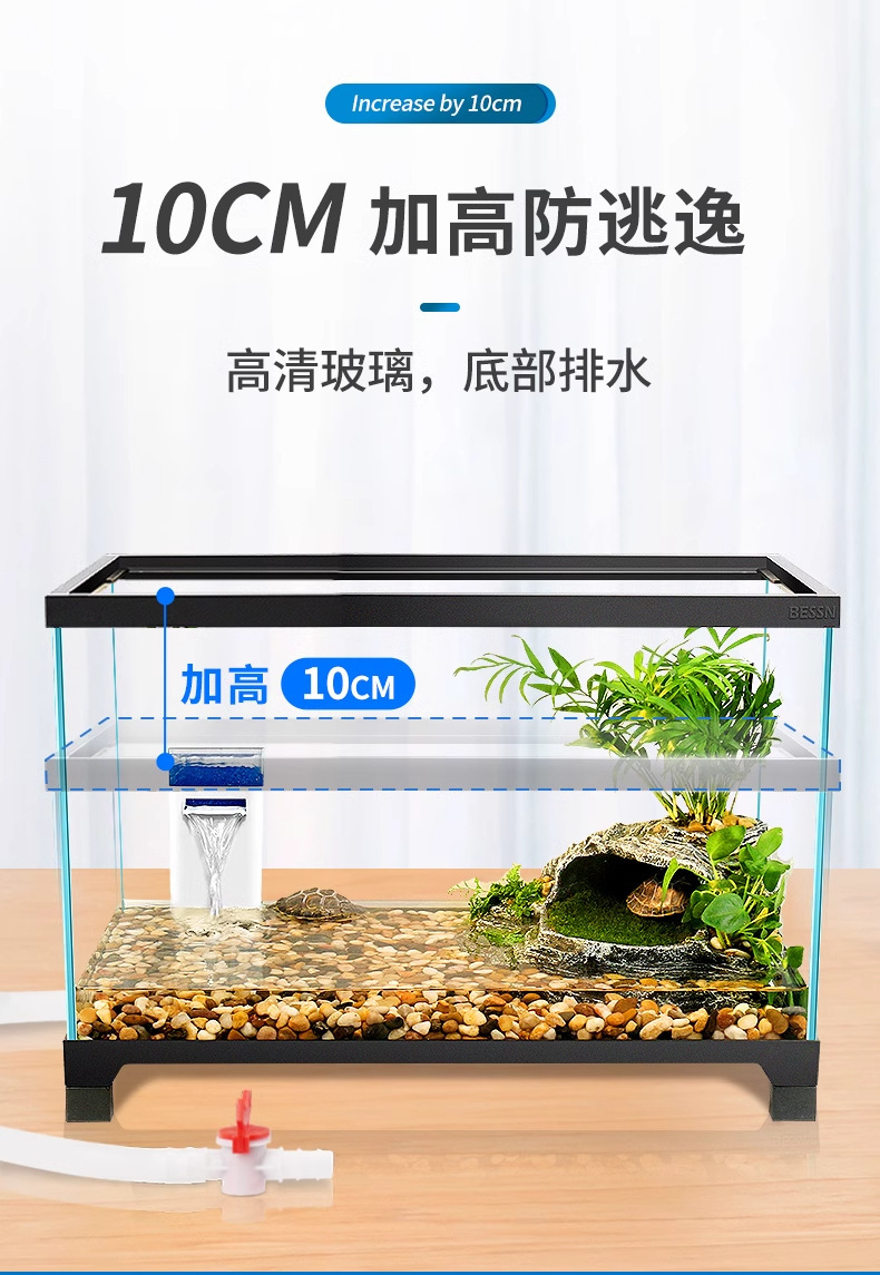 거북이 케이지 슈퍼 화이트 유리 가정용 바닥 배수 생태 거북 케이지 풍경 배스 테이블 올리기 어류 탱크