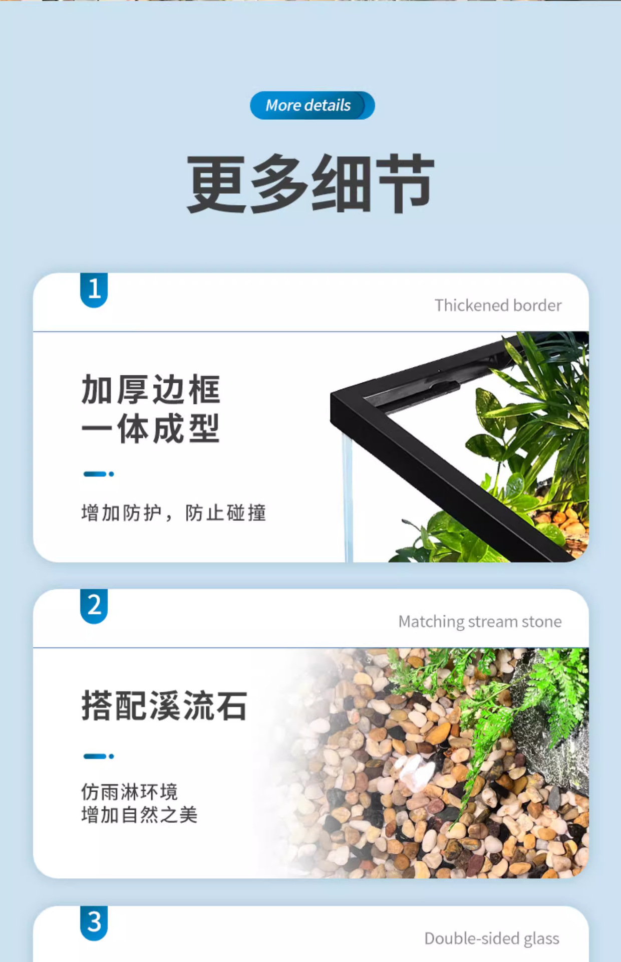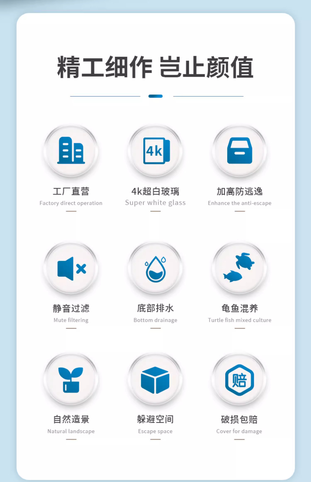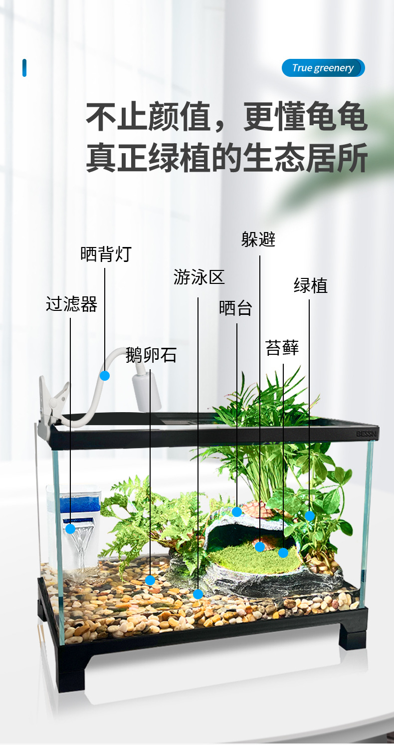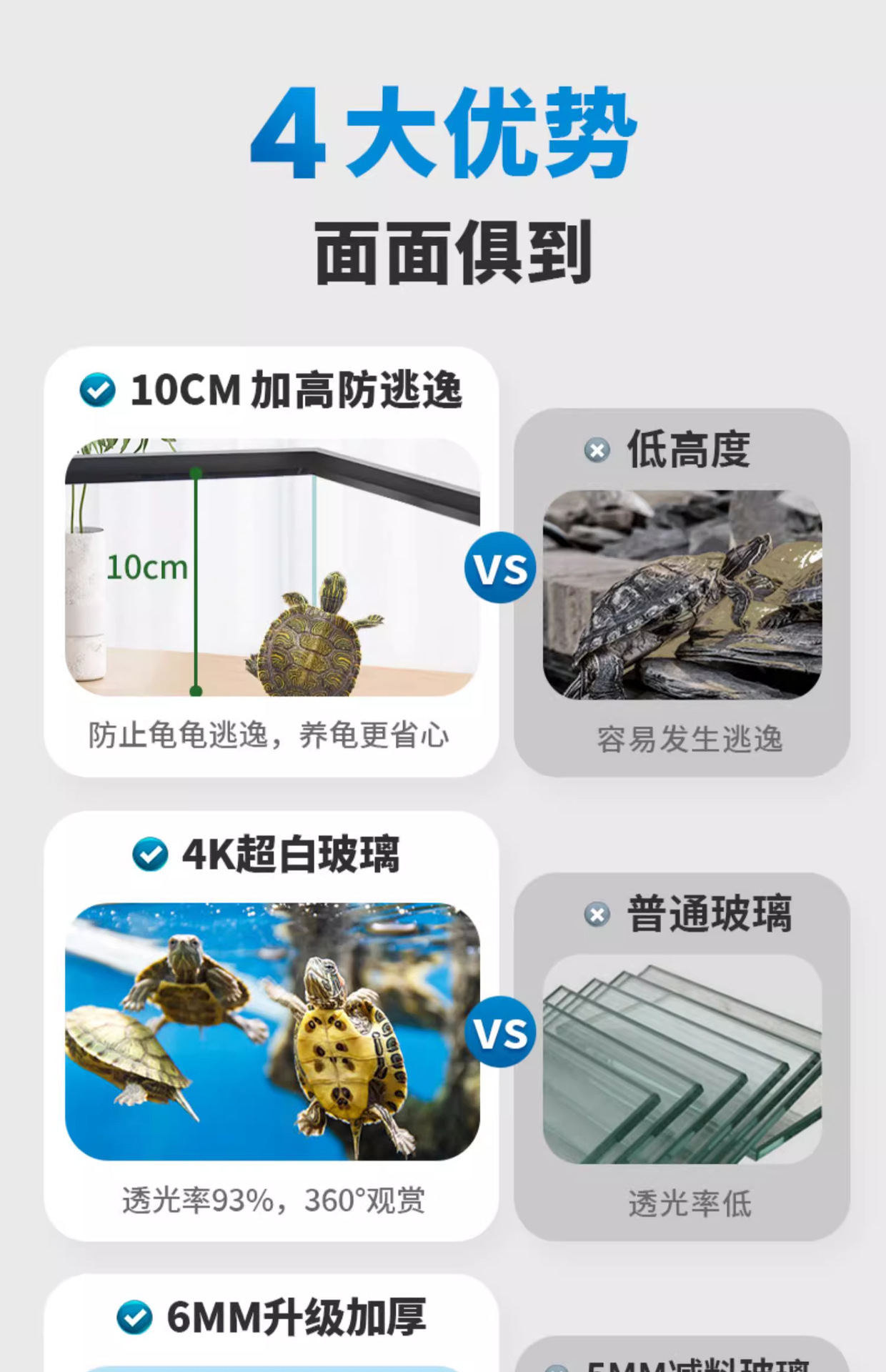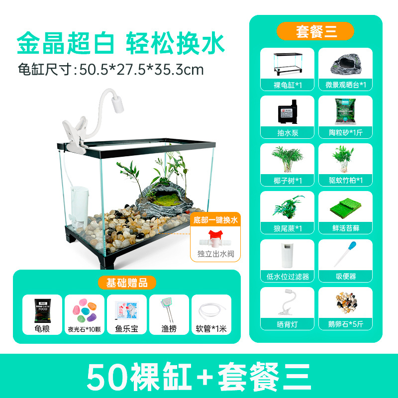 거북이 케이지 슈퍼 화이트 유리 가정용 바닥 배수 생태 거북 케이지 풍경 배스 테이블 올리기 어류 탱크