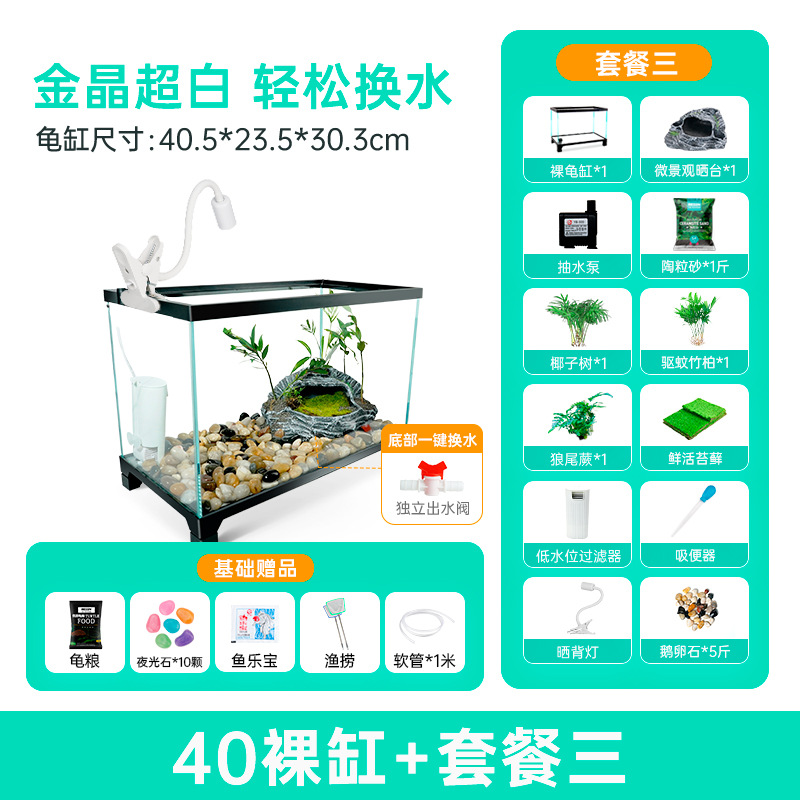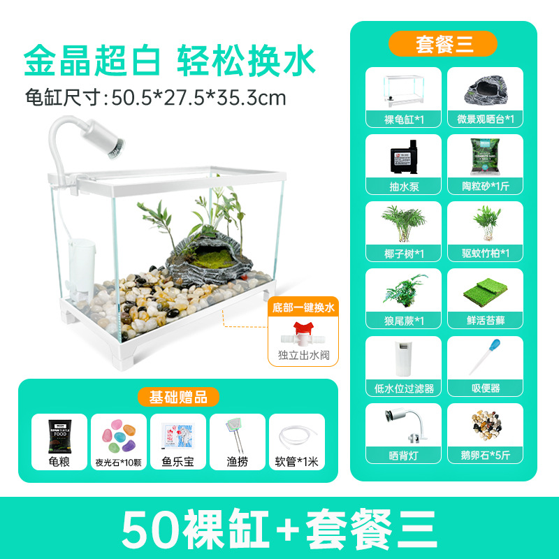 거북이 케이지 슈퍼 화이트 유리 가정용 바닥 배수 생태 거북 케이지 풍경 배스 테이블 올리기 어류 탱크스토어 가기