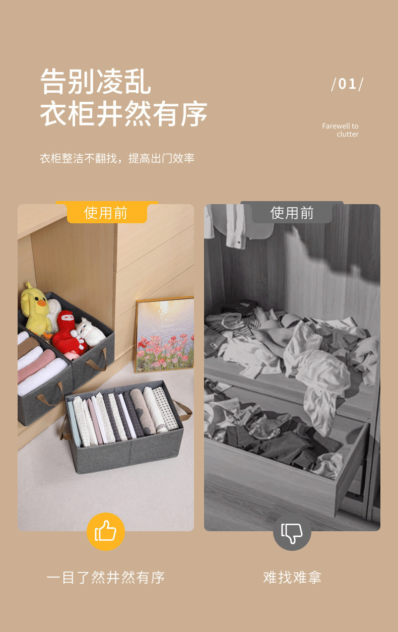 패브릭 옷장 보관 상자 의류 및 바지 분할 보관 의류 및 바지 서랍 보관 상자 접이식 저장 상자스토어 가기