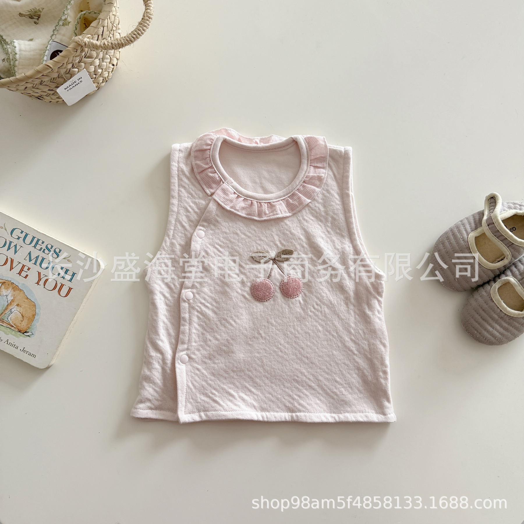 갓 태어난 아기 조끼 봄과 여름 얇은 작은 조끼 체리 더블 0-3 월 0 일-6 월 외부 조끼스토어 가기
