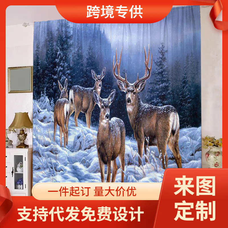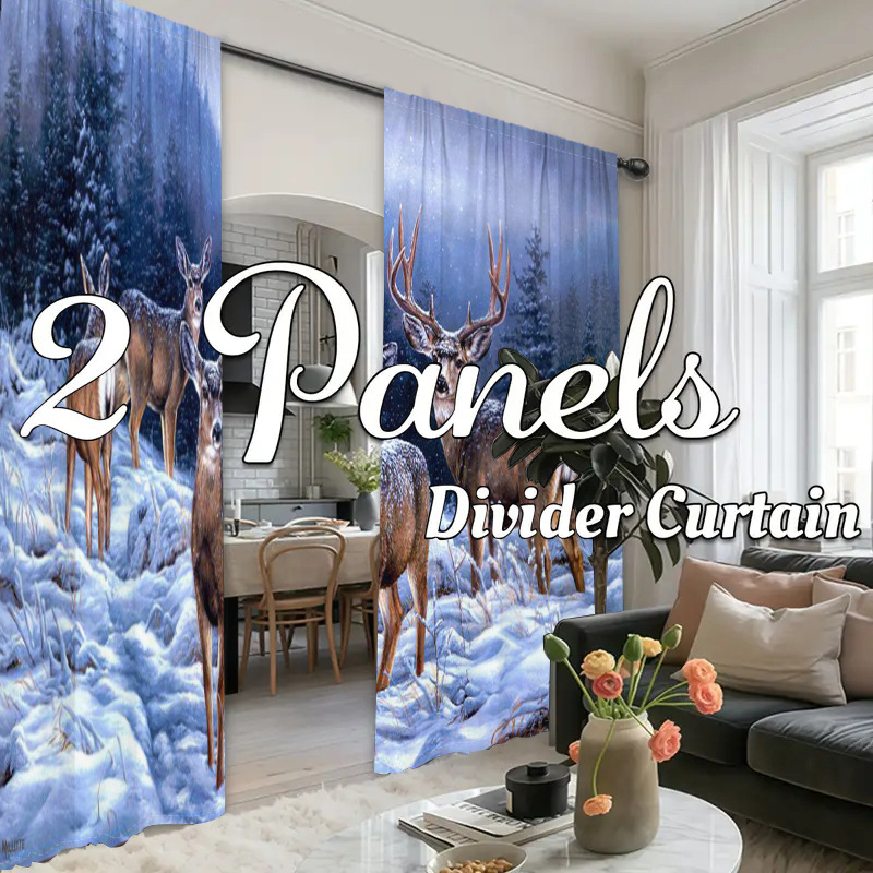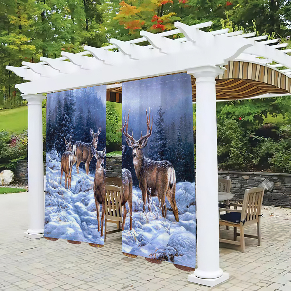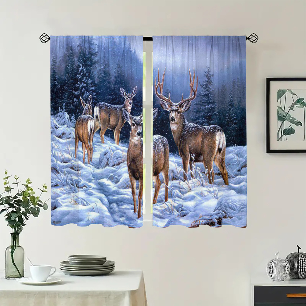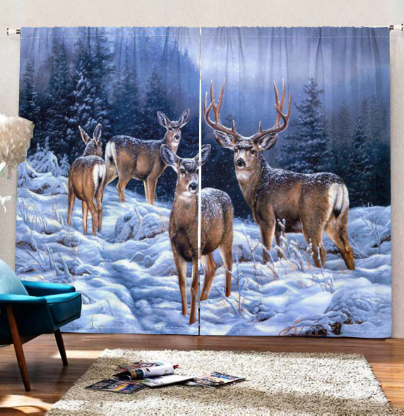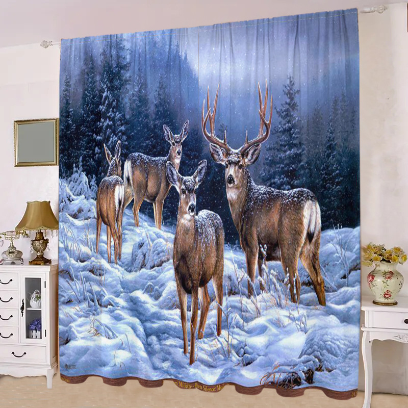 디지털 인쇄 커튼 눈 엘크 현실적인 패턴 거실 발코니 침실 야외 커튼 막대 커튼을 착용 두 조각
