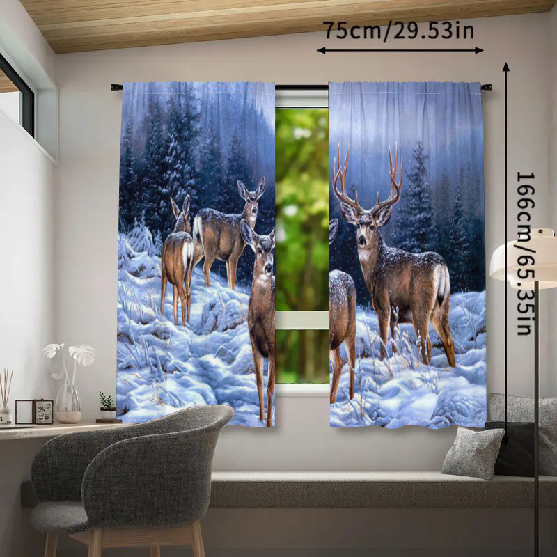 디지털 인쇄 커튼 눈 엘크 현실적인 패턴 거실 발코니 침실 야외 커튼 막대 커튼을 착용 두 조각스토어 가기