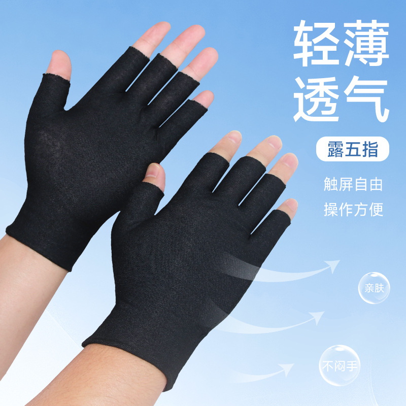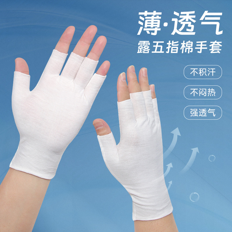 이슬 다섯 손가락 흰색면 장갑 반 손가락 통기성 땀 흡수성 얇은 남성 및 여성 공장 창고 포장 분류 작업 화면을 터치 할 수 있습니다