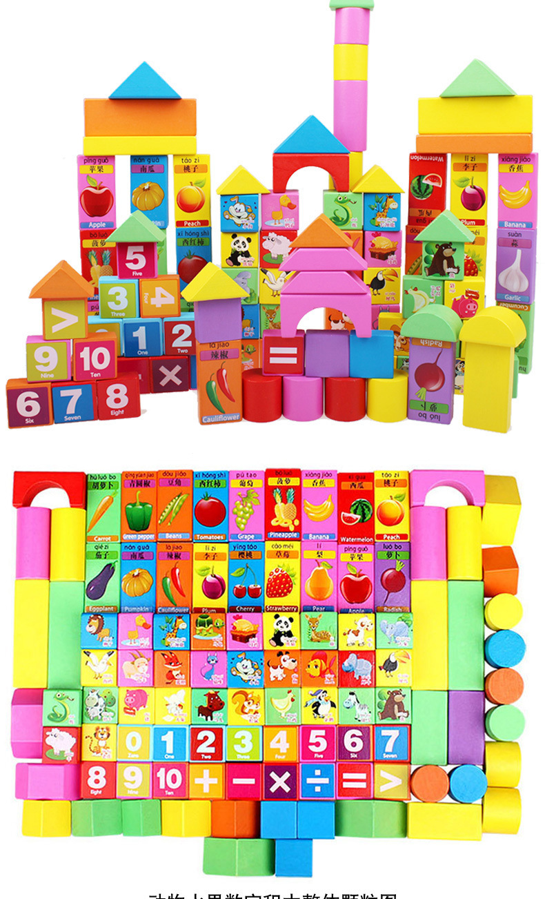 어린이 나무 빌딩 블록 장난감 1-2-3-6 세 아기 조립 디지털 배럴 나무 단단한 나무 도매스토어 가기