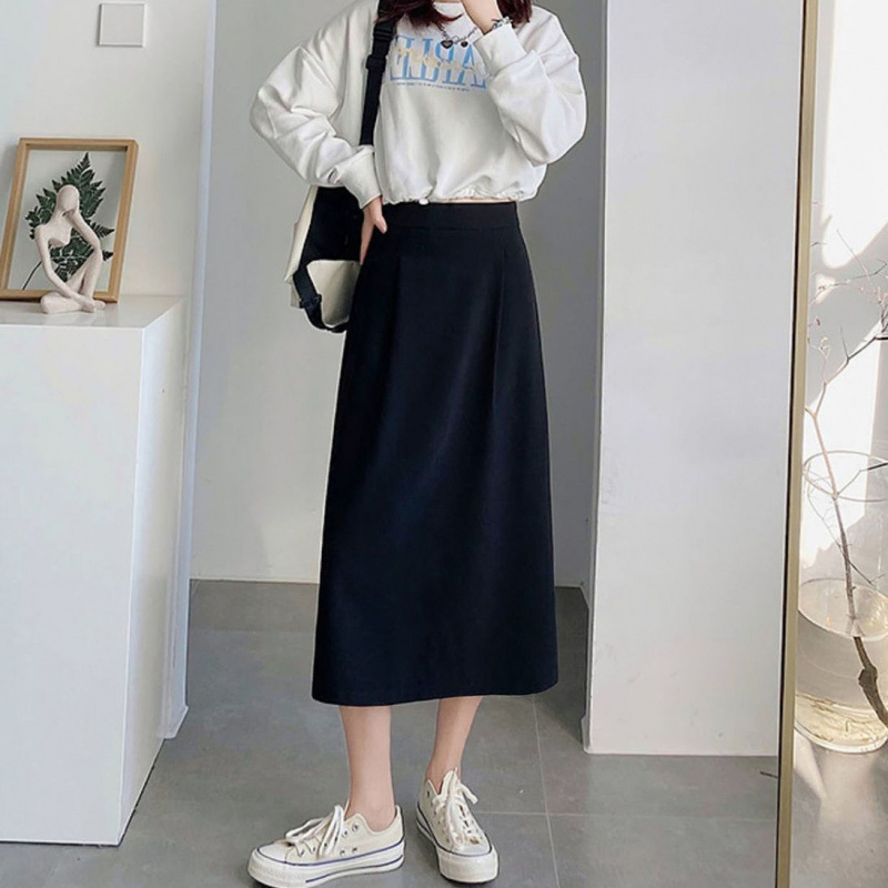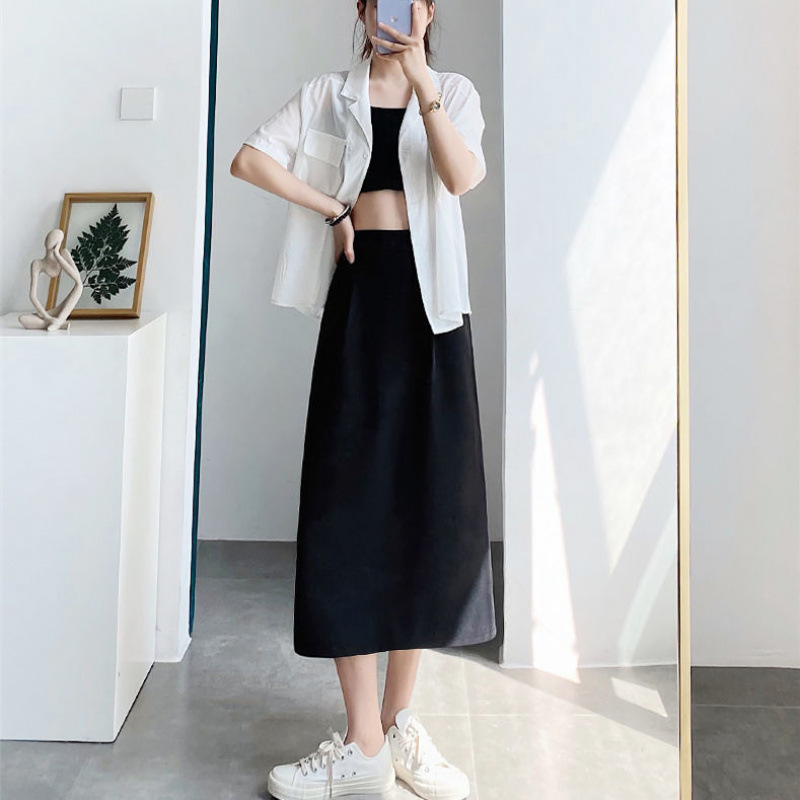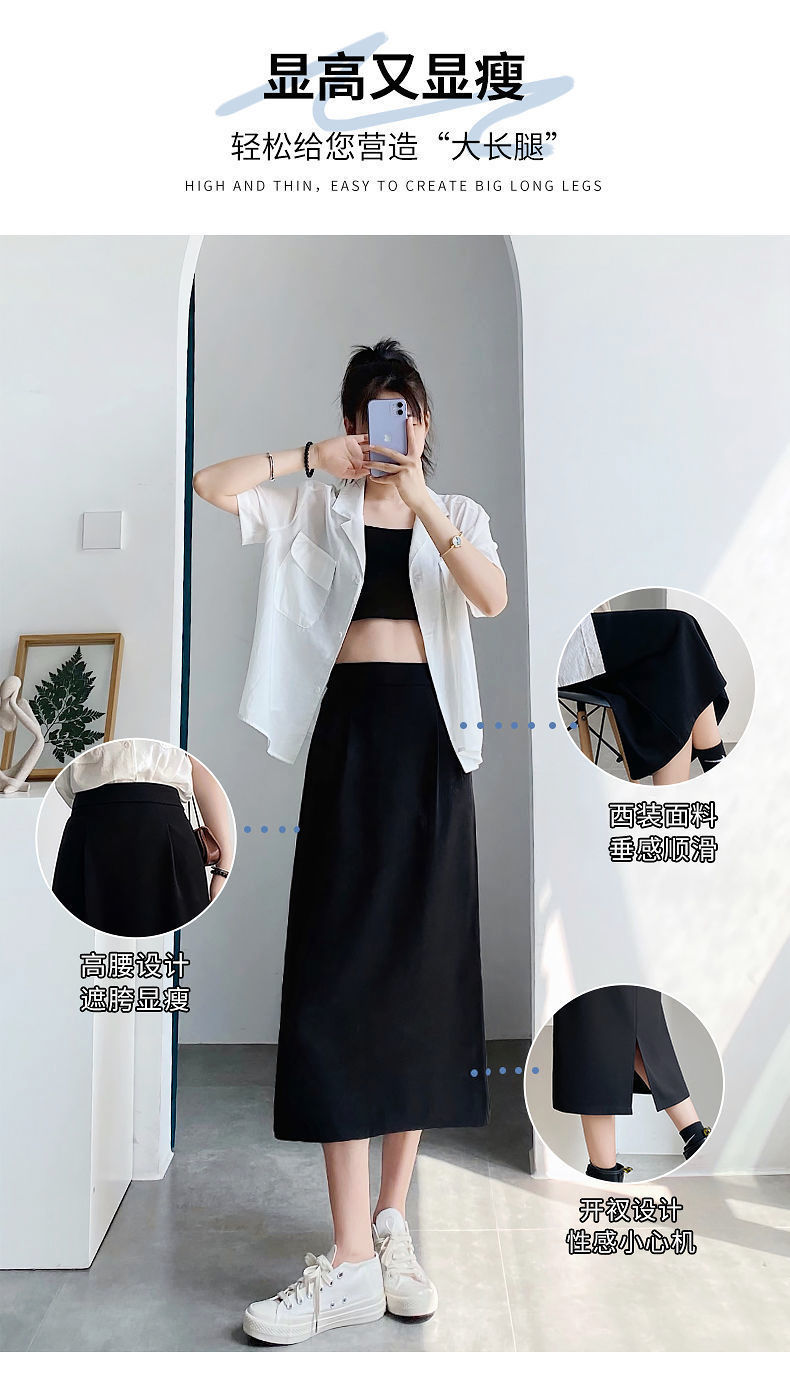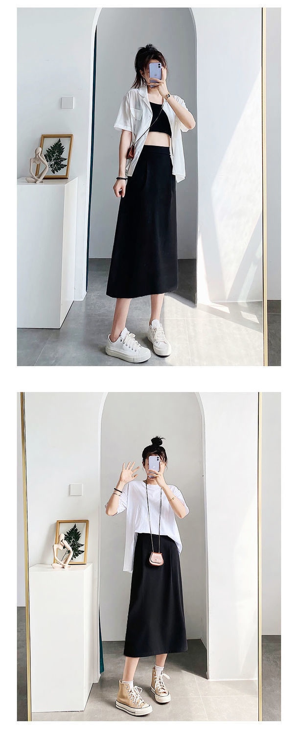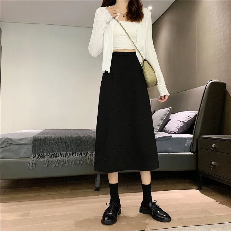 세트 스커트 여성의 봄과 여름 새로운 높은 허리 중간 길이 A 라인 스커트 하이 엔드 펜던트 센스 슬리밍 엉덩이 커버 스커트 가을