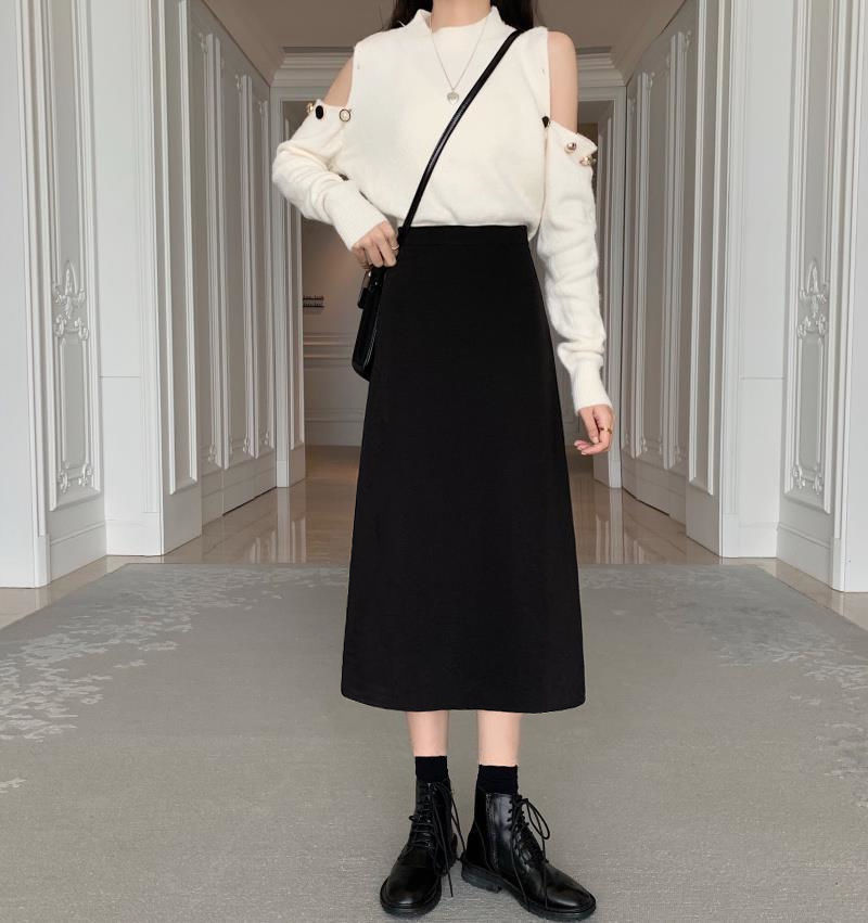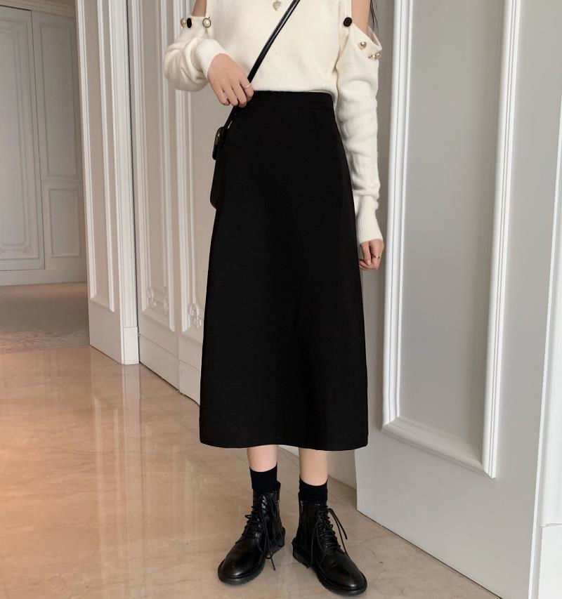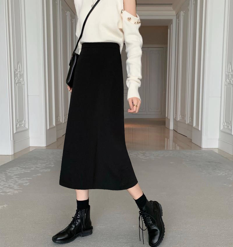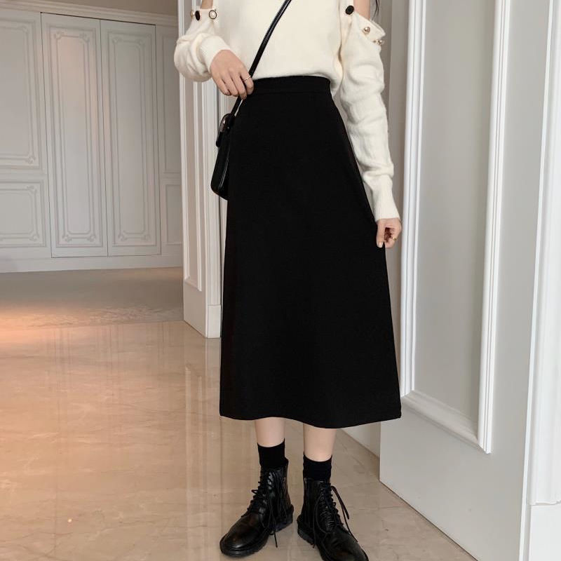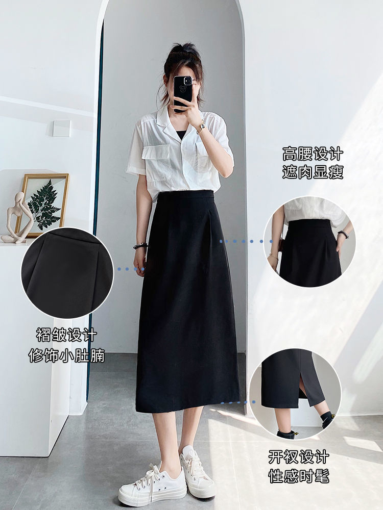 세트 스커트 여성의 봄과 여름 새로운 높은 허리 중간 길이 A 라인 스커트 하이 엔드 펜던트 센스 슬리밍 엉덩이 커버 스커트 가을