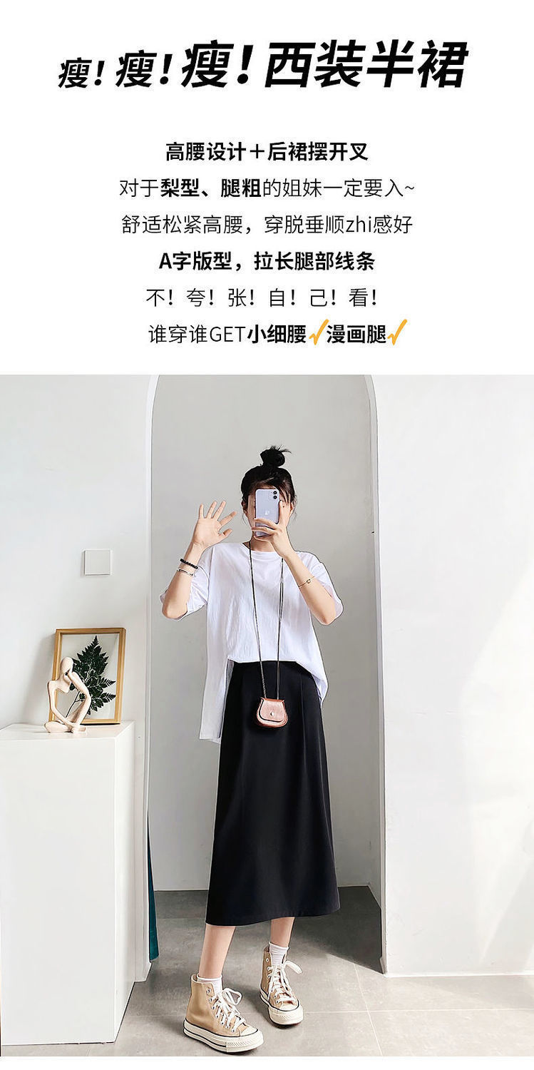 세트 스커트 여성의 봄과 여름 새로운 높은 허리 중간 길이 A 라인 스커트 하이 엔드 펜던트 센스 슬리밍 엉덩이 커버 스커트 가을스토어 가기