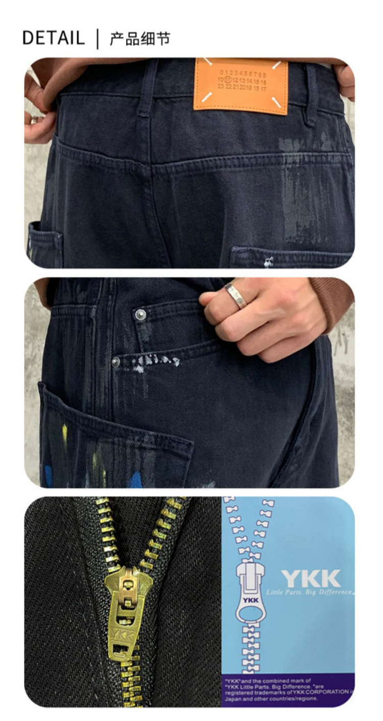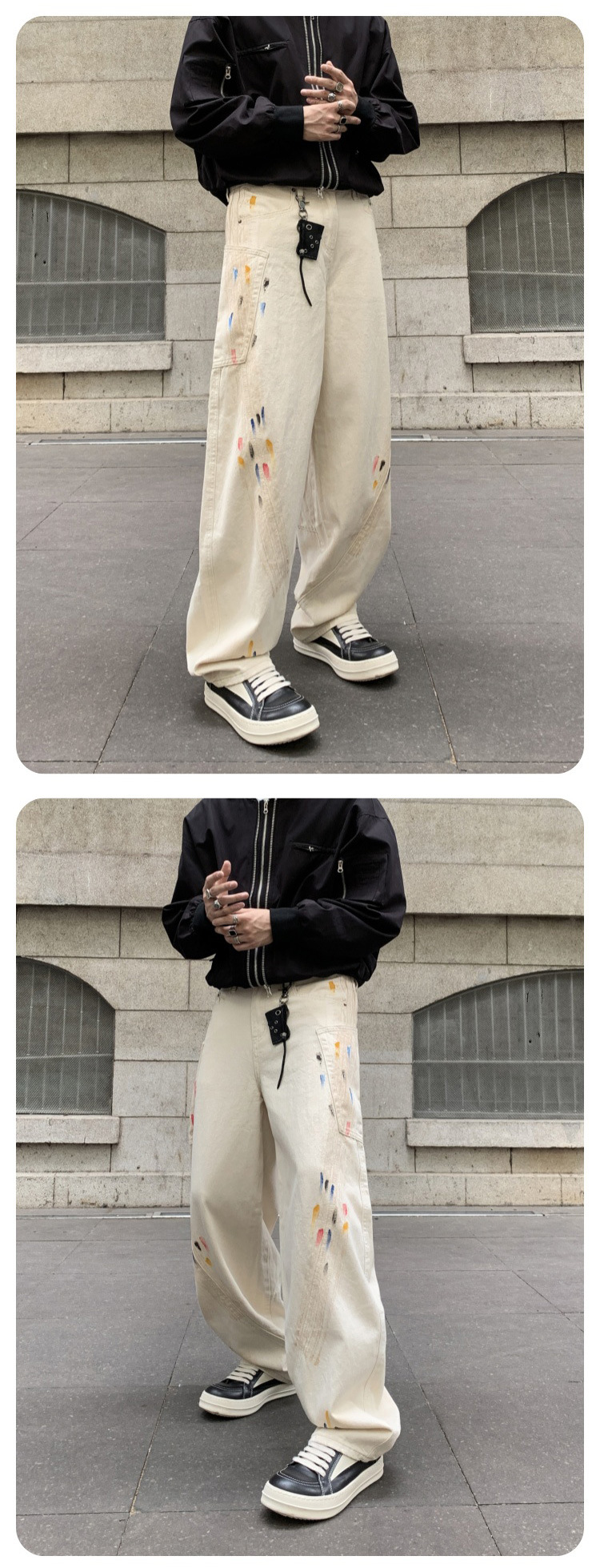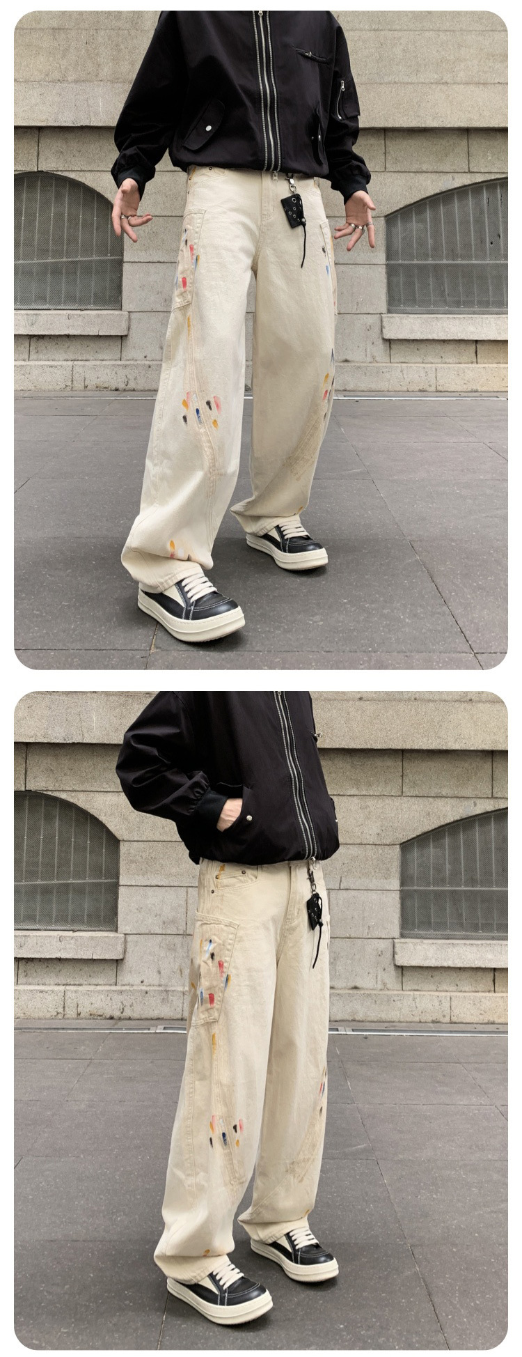 새로운 패션 브랜드 느슨한 스트레이트 아이보리 세탁 청바지 남성스토어 가기