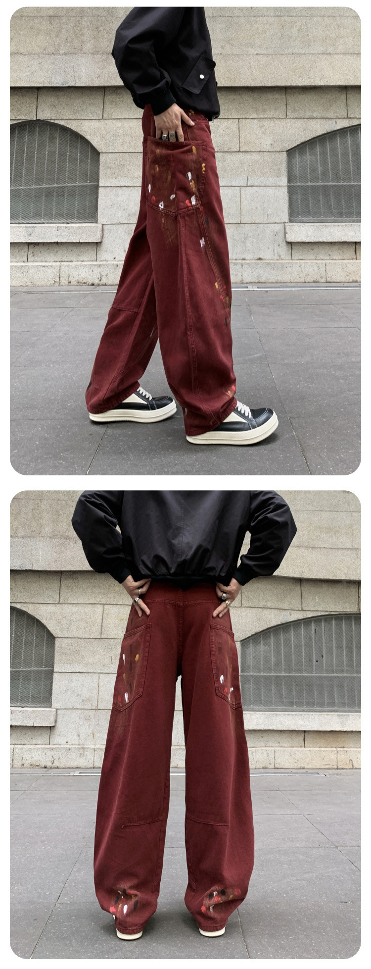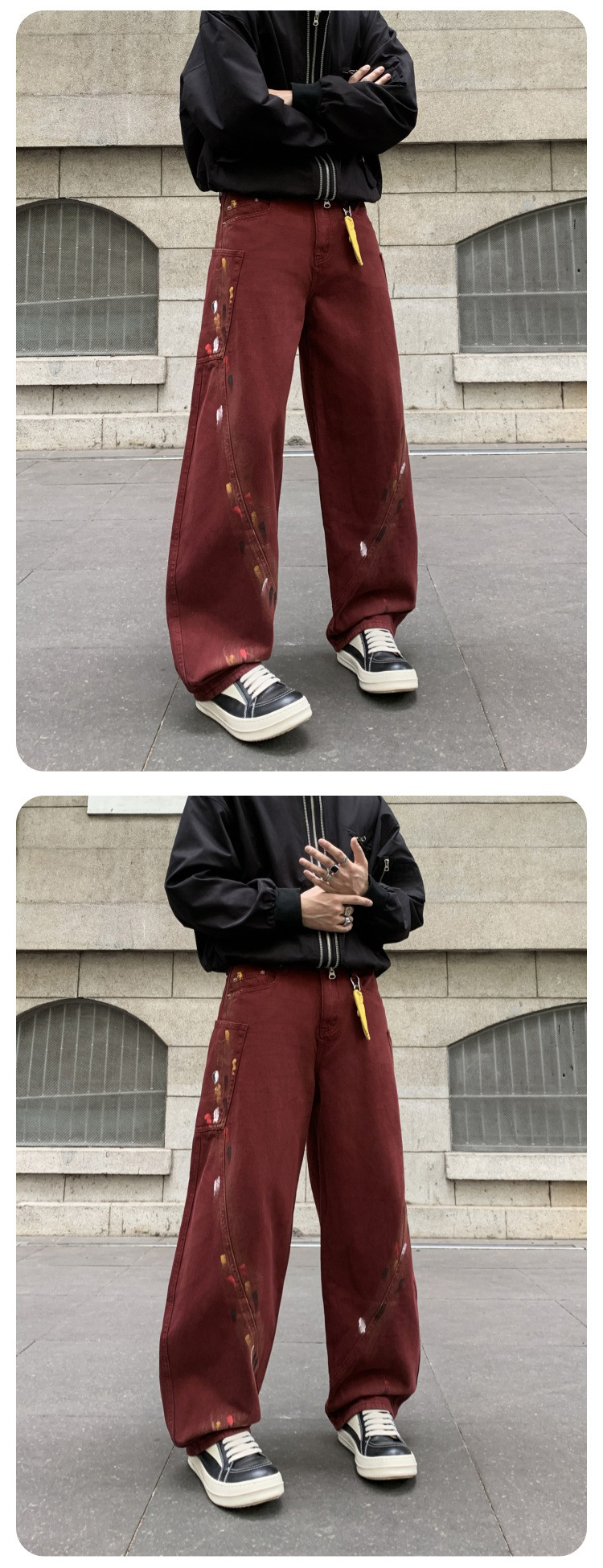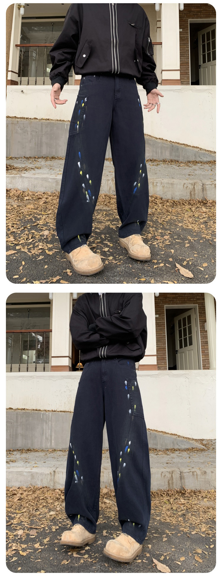 새로운 패션 브랜드 느슨한 스트레이트 아이보리 세탁 청바지 남성스토어 가기