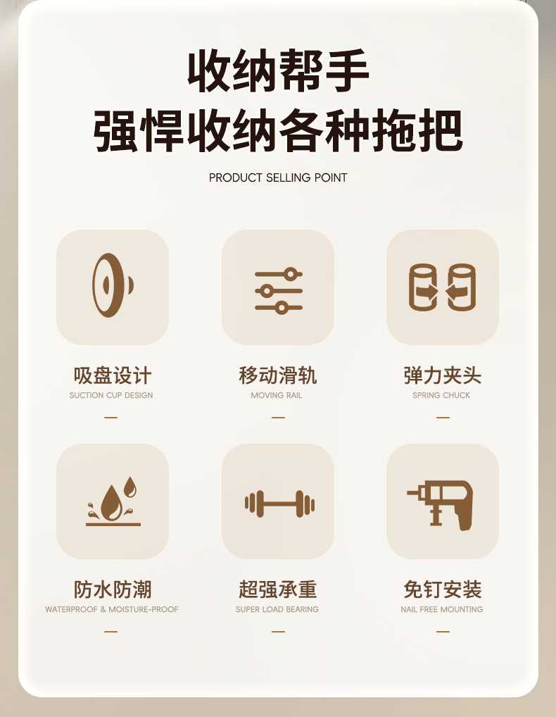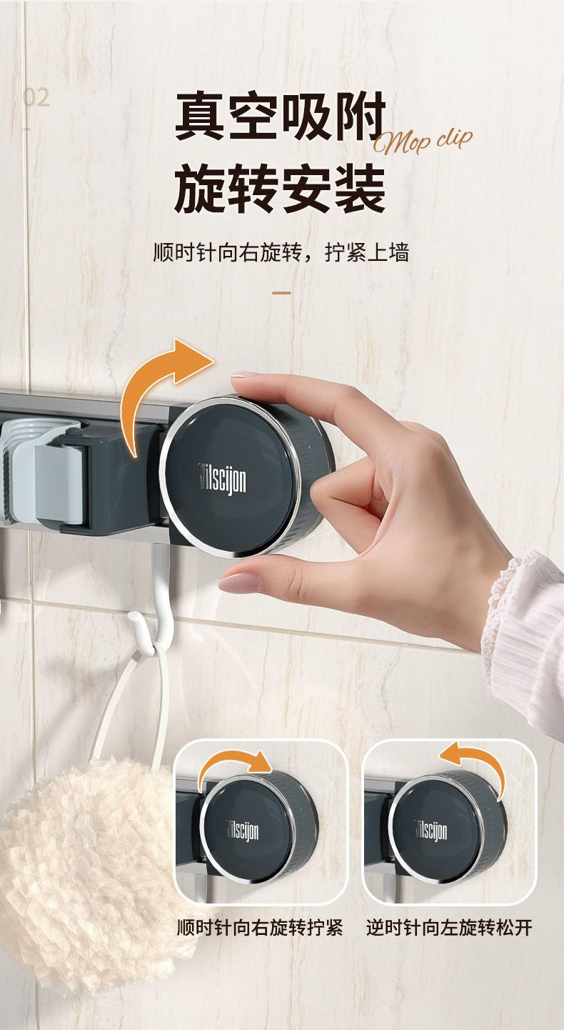 구멍이 없는 Weijian 알루미늄 합금 걸레 홀더, 욕실 벽 걸레 걸이, 벽걸이형 걸레 클립 후크 버클스토어 가기