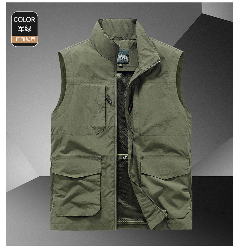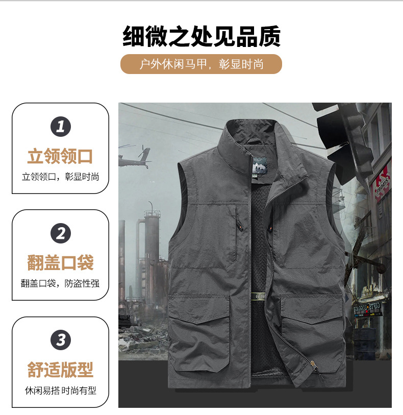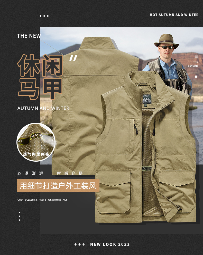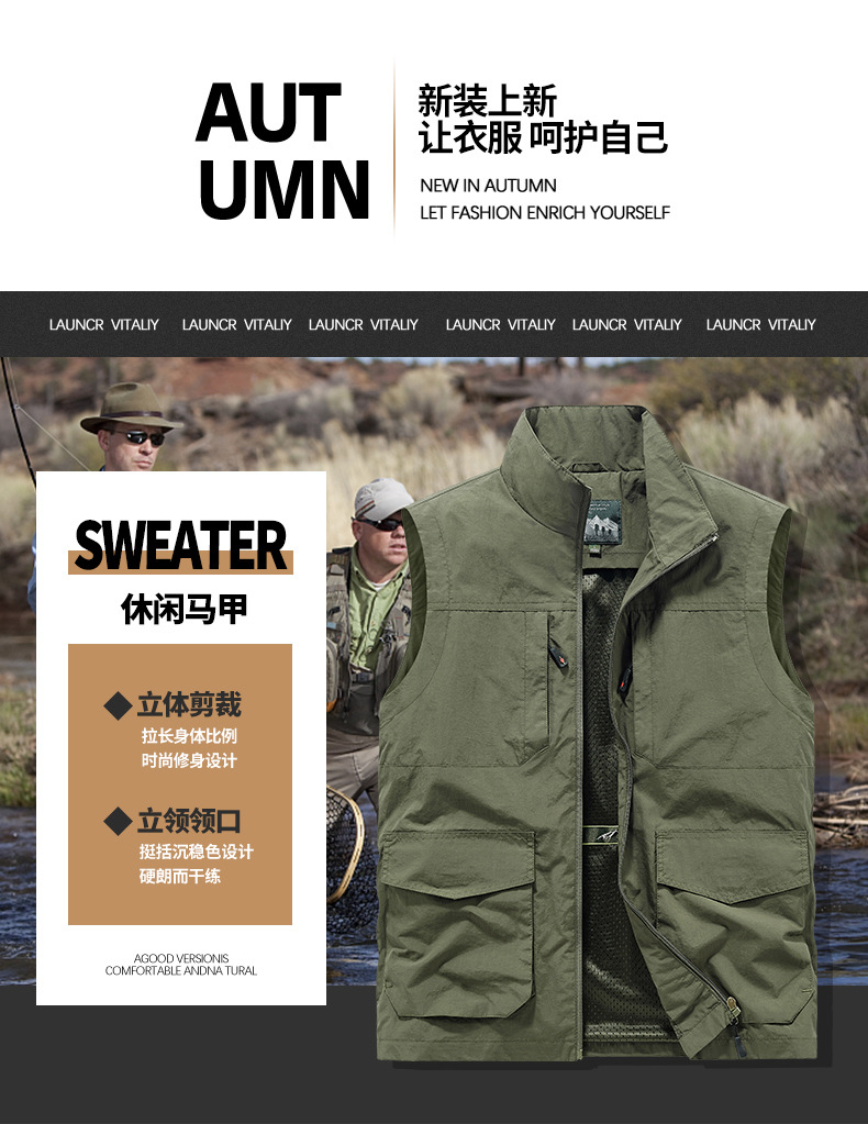 [2385] 봄과 가을 야외 멀티 포켓 작업복 조끼 사진 낚시 목걸이 남성 어깨 등산 관광