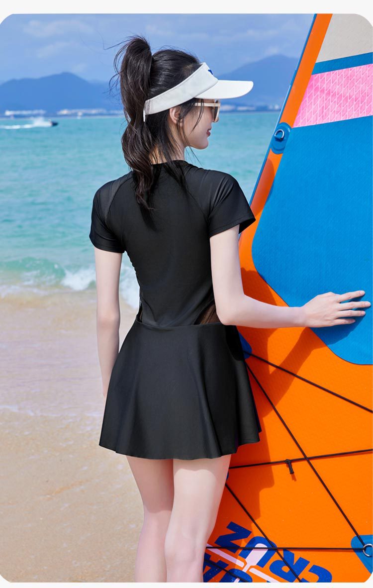 새로운 수영복 여성 원피스 스커트 보수적 인 슬리밍 배, 보수 수영장 온천 스포츠 플러스 사이즈 수영 세트 덮다