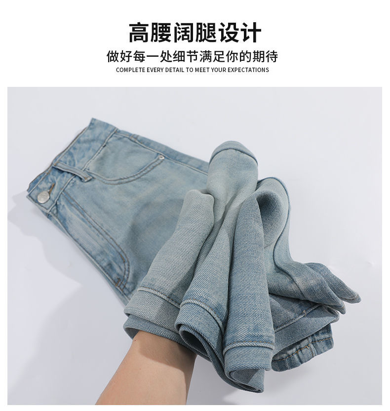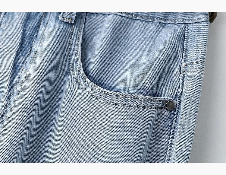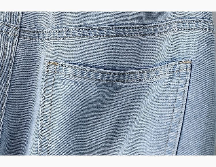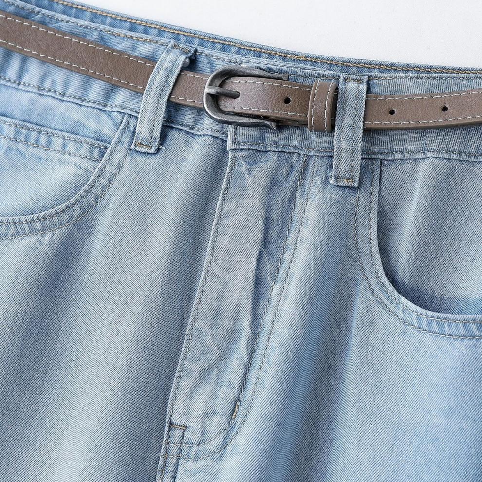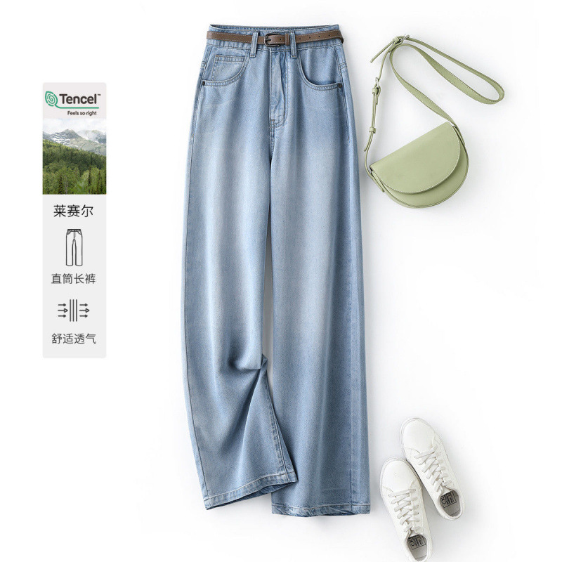 2025 새로운 여름 얇은 텐셀 넓은 다리 청바지 여성의 느슨한 높은 허리 짧은 좁은 직선 바지스토어 가기