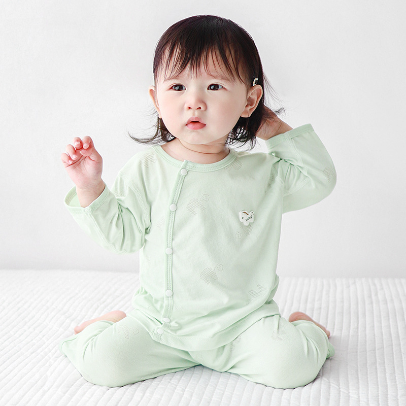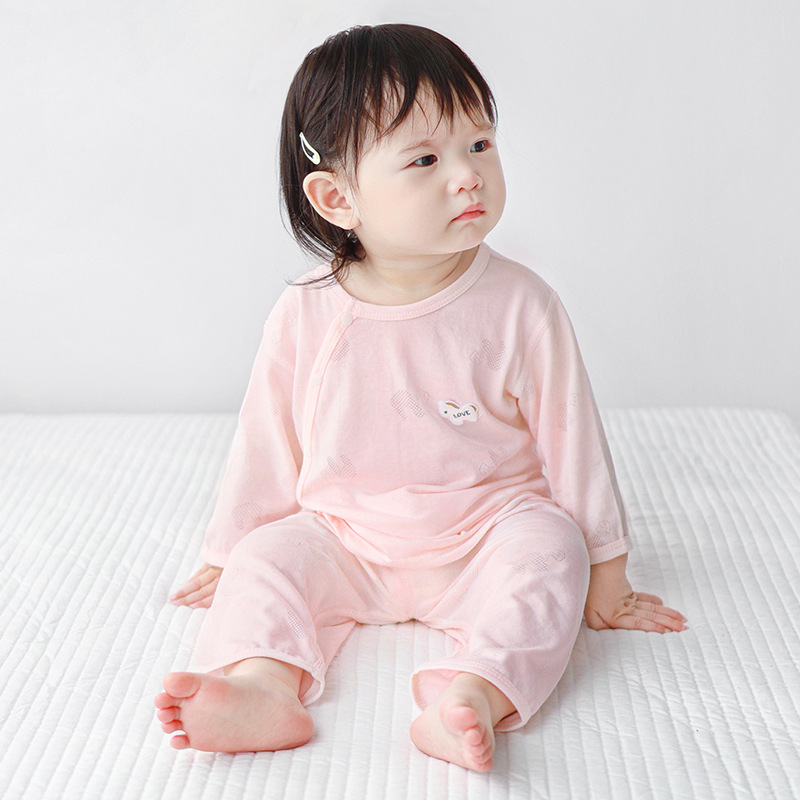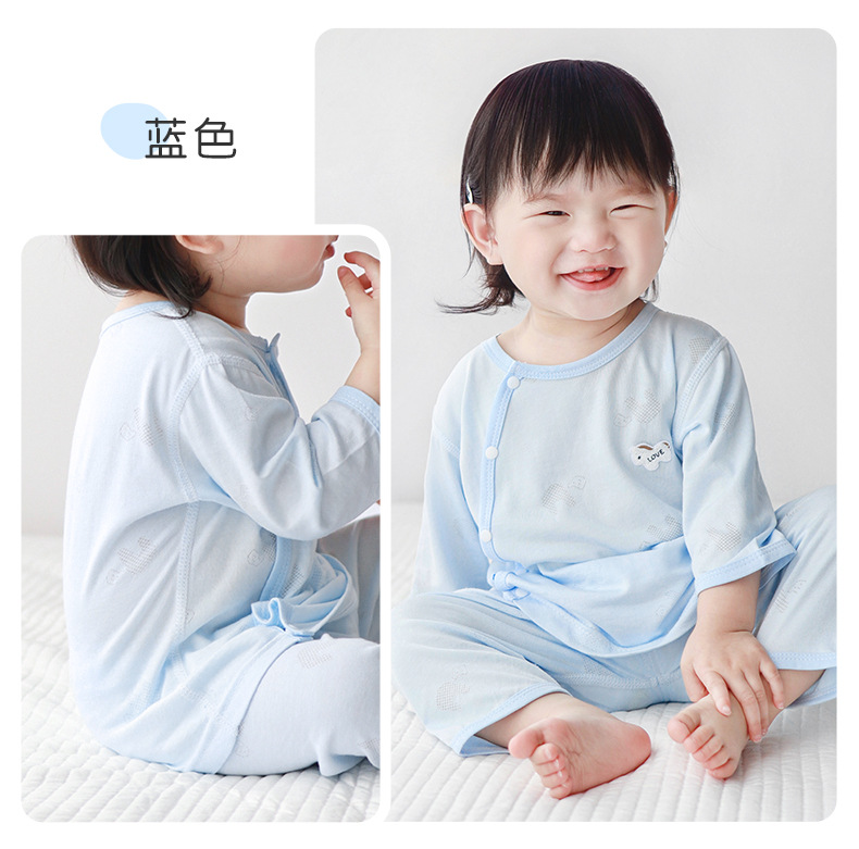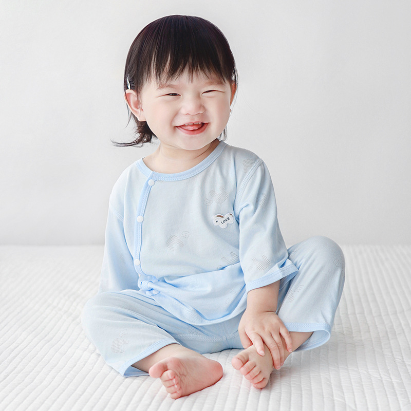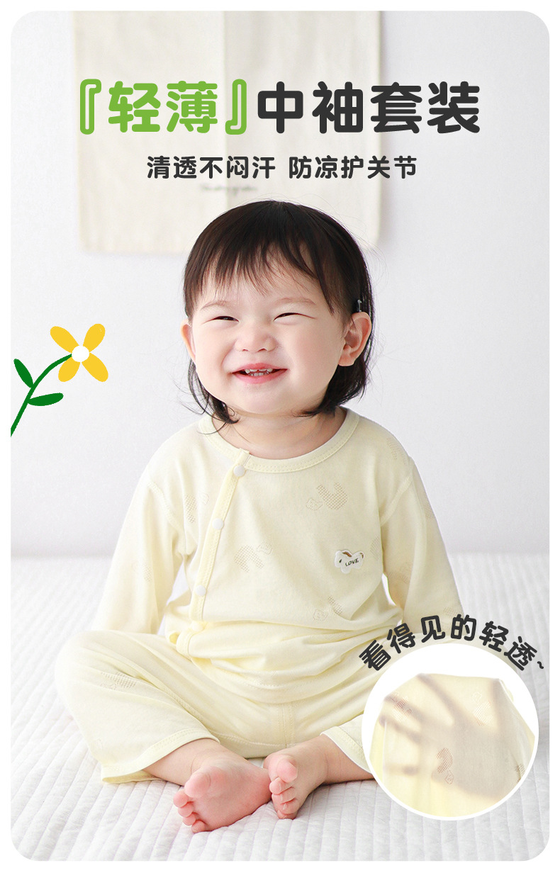 아기 여름 세트 어린이 얇은 에어컨 반소매 투피스 세트 소년과 소녀 미드 슬리브 분할 여름 아기 옷