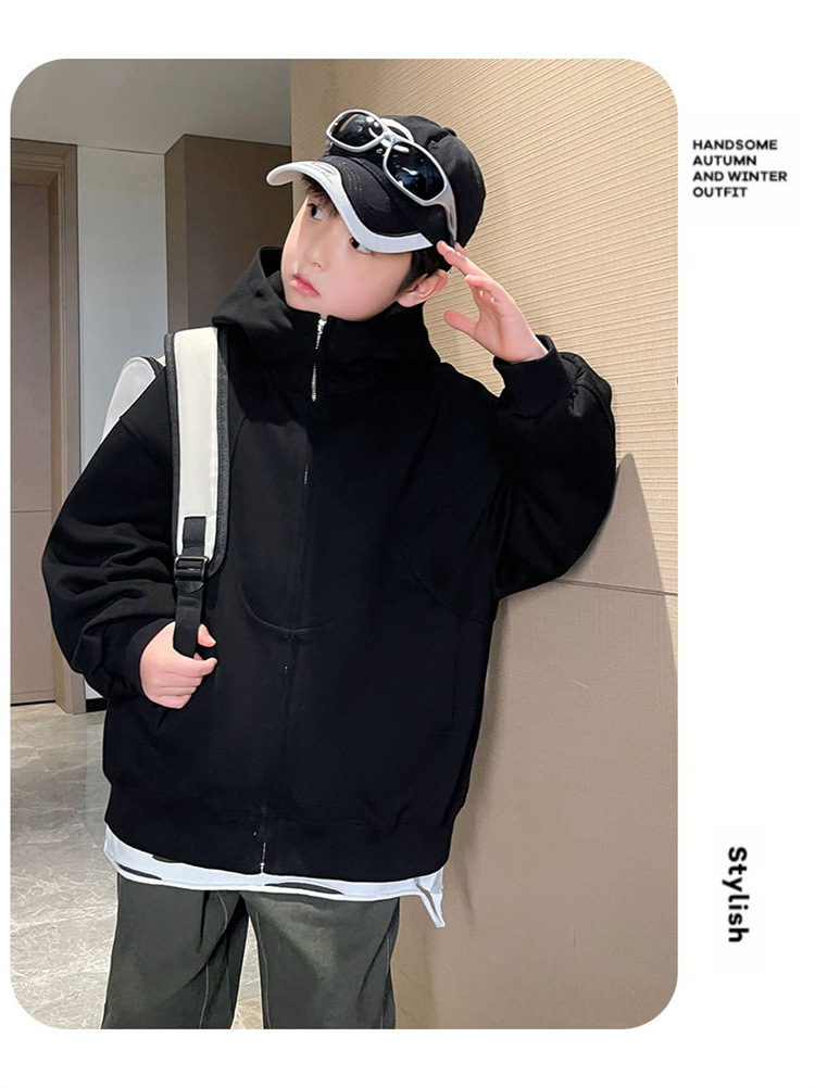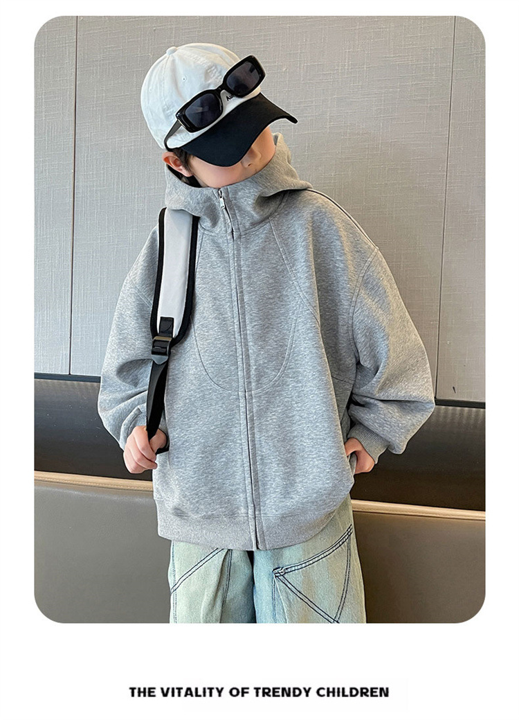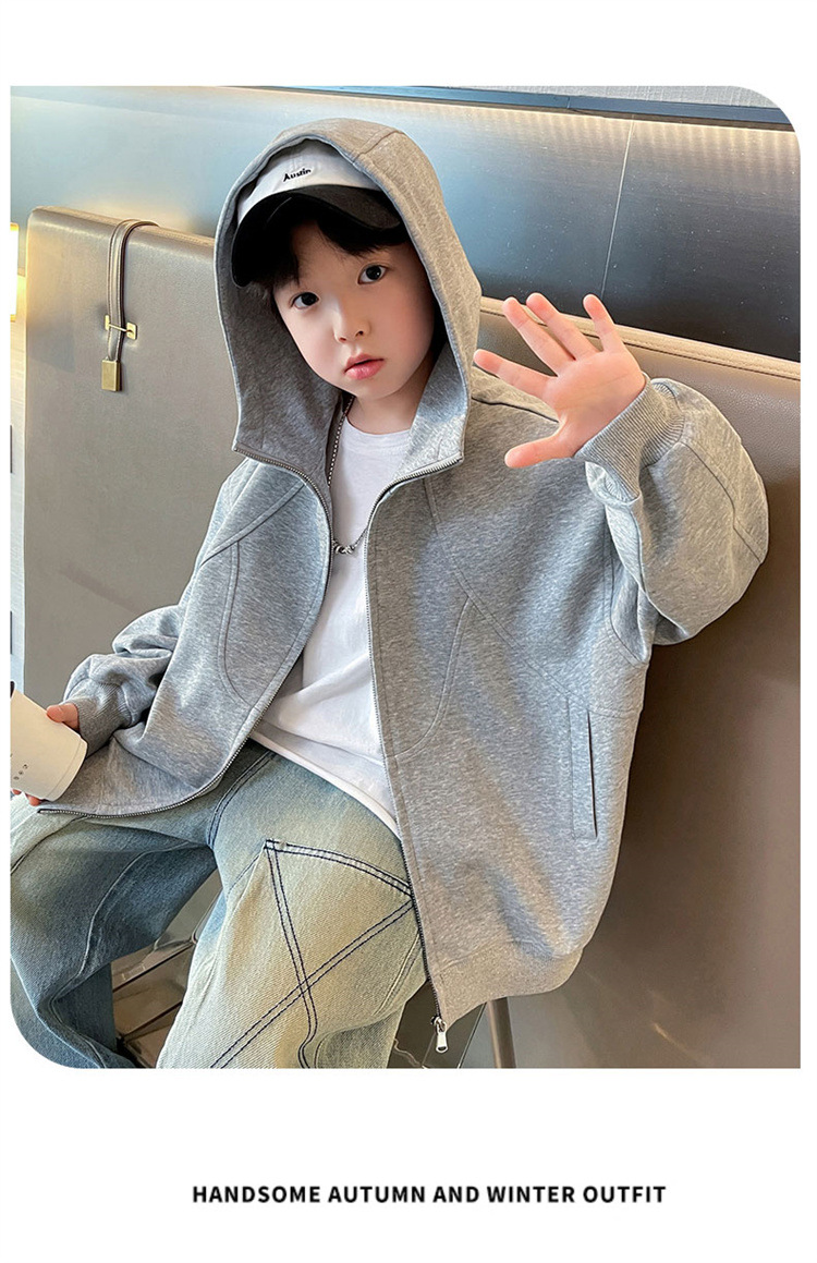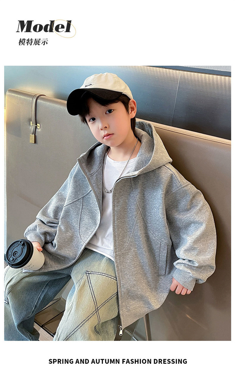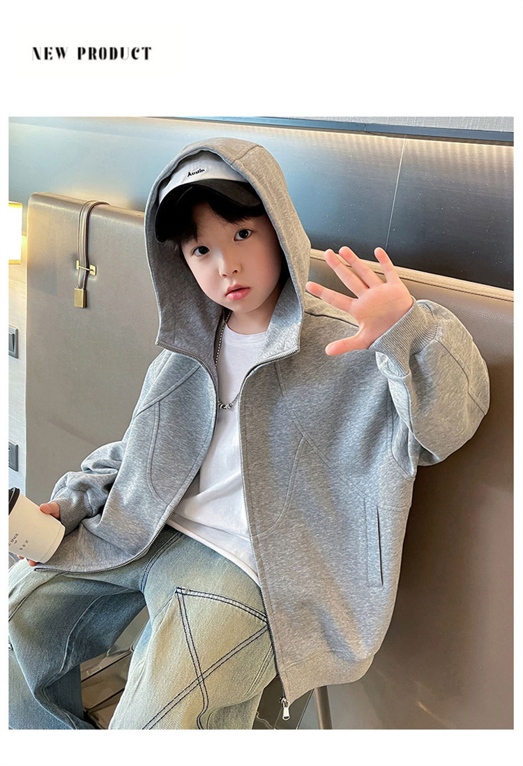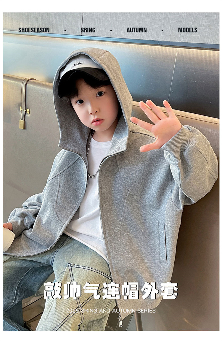 아동복 소년 봄 코트 2025 새로운 스타일 중대형 소년 캐주얼 서양식 후드 재킷 코트 트렌디스토어 가기