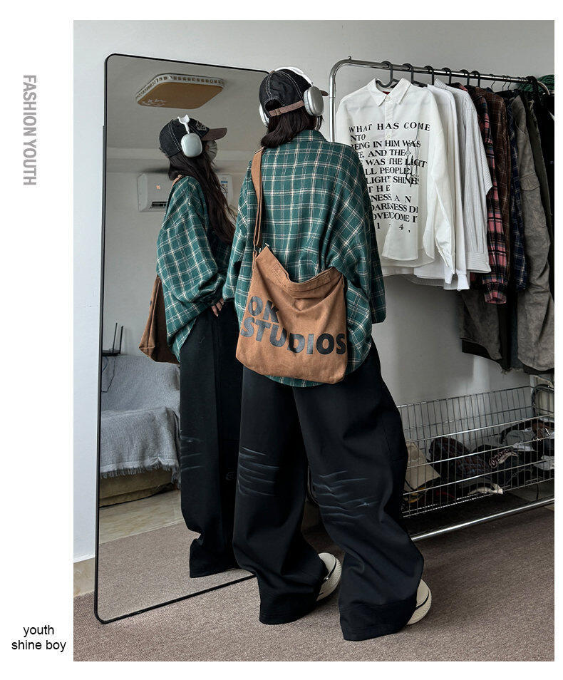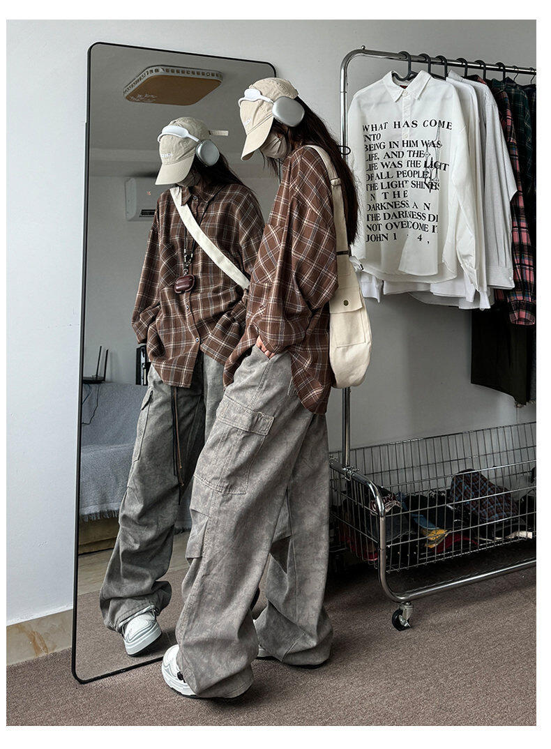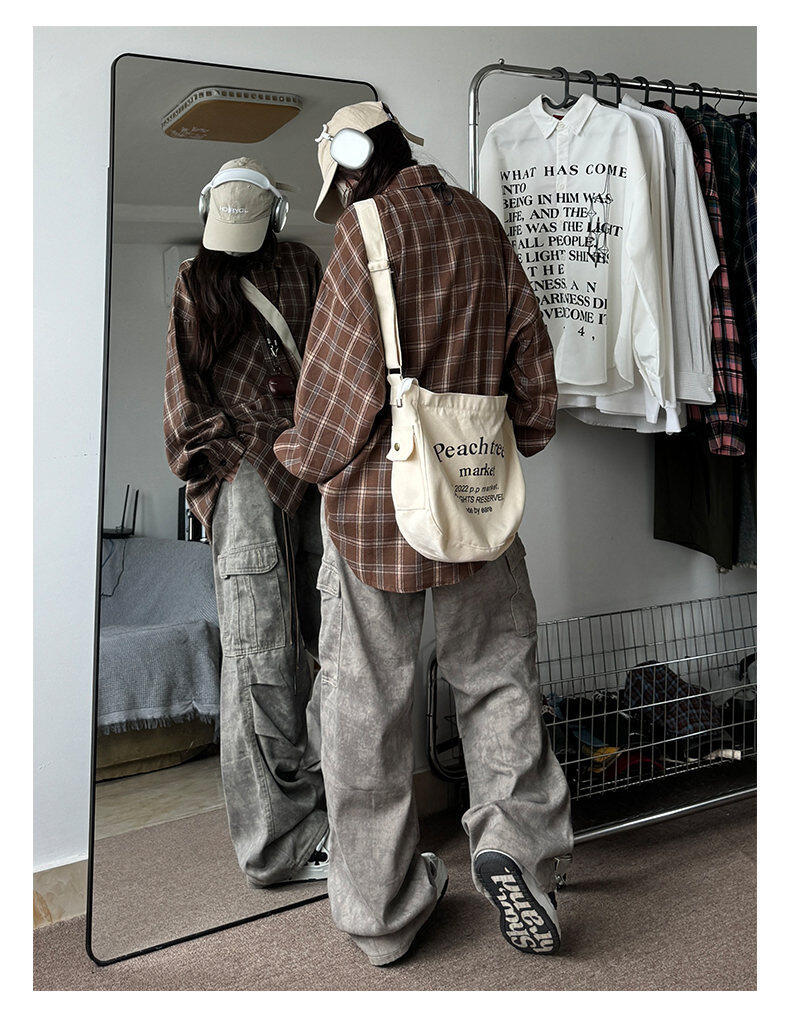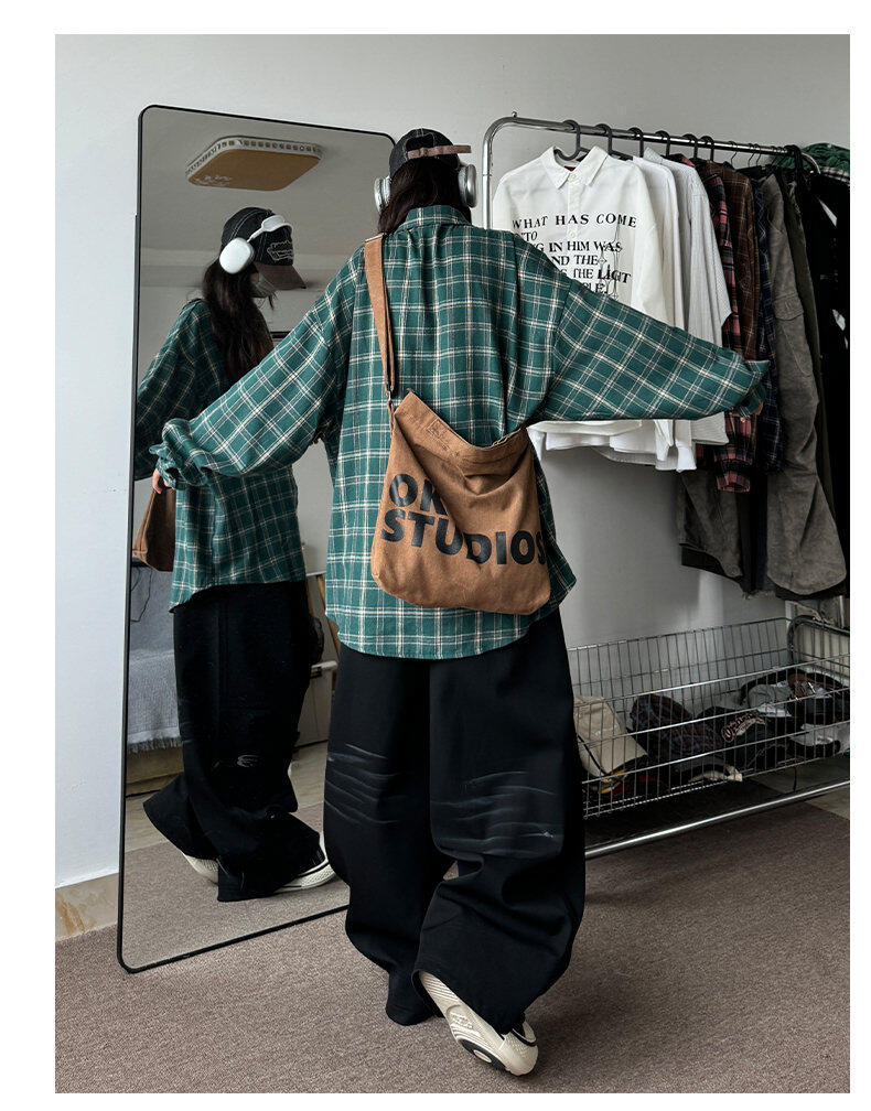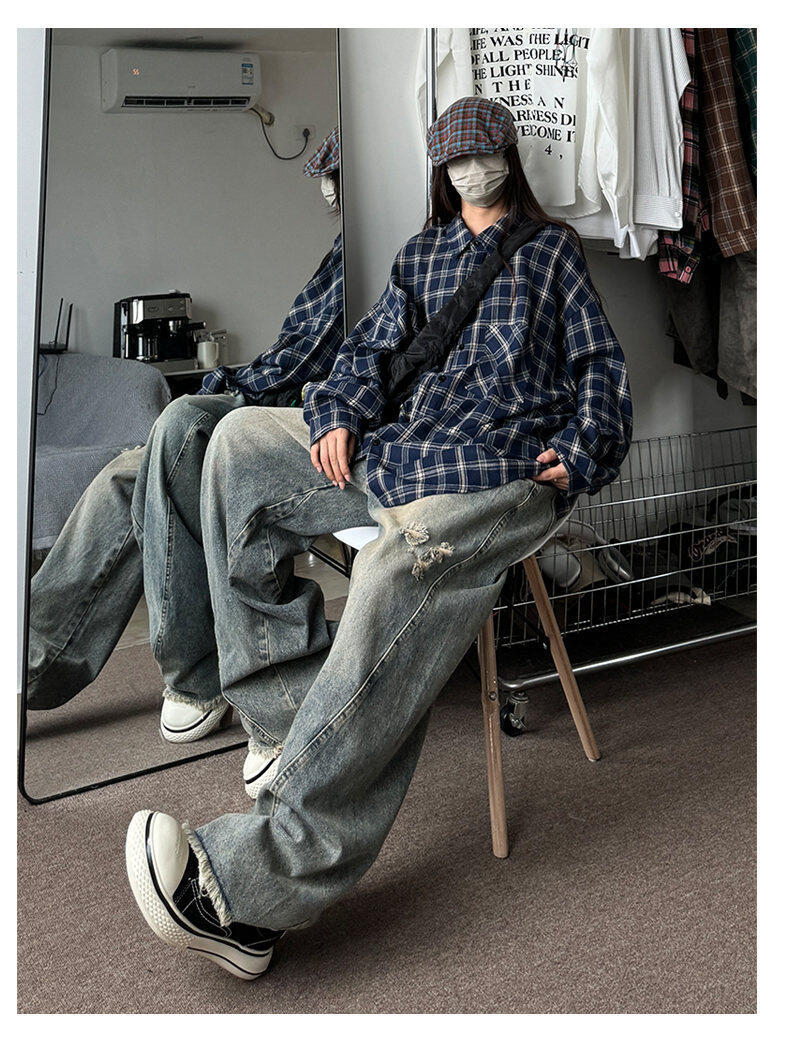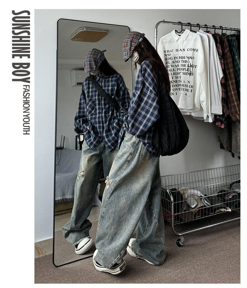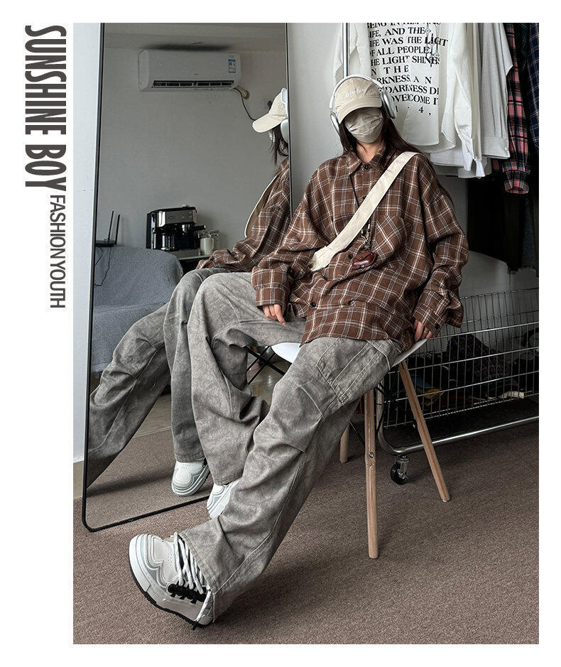 남성용 셔츠 봄 신상 홍콩 스타일 루즈핏 기모 대형 체크 셔츠 학생용 심플 캐주얼 긴팔 자켓스토어 가기