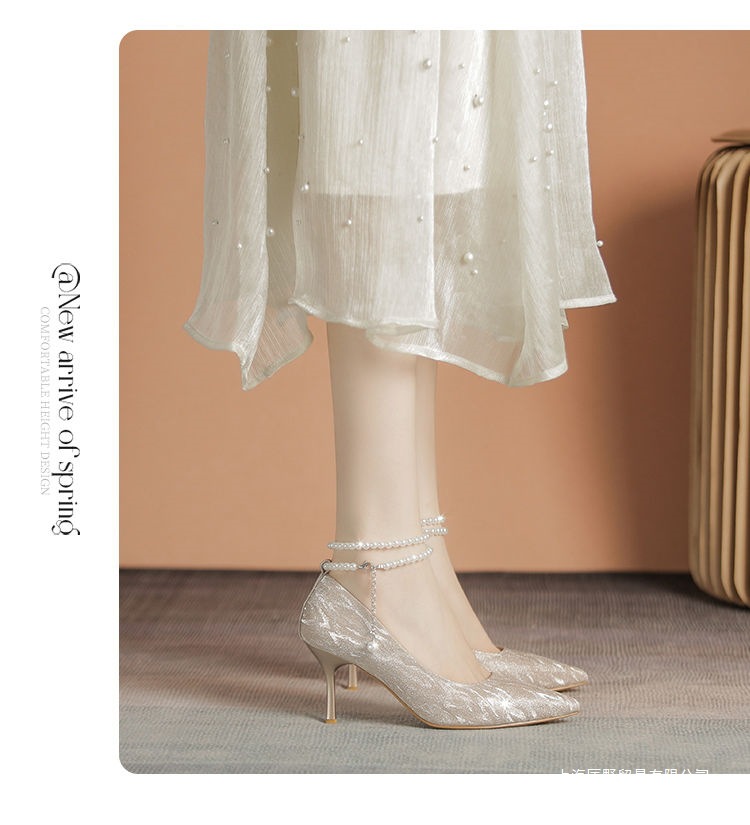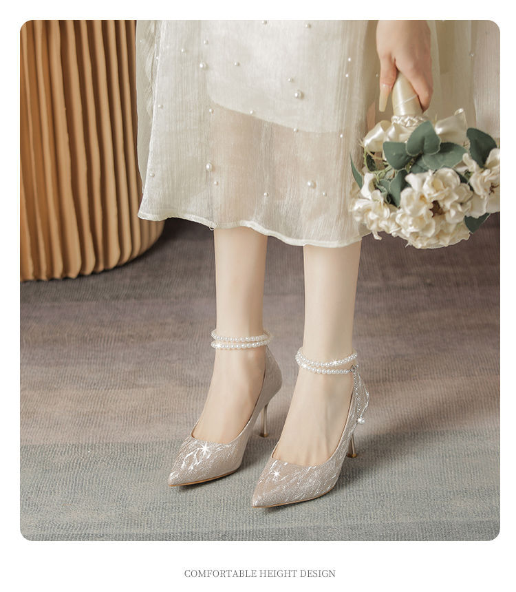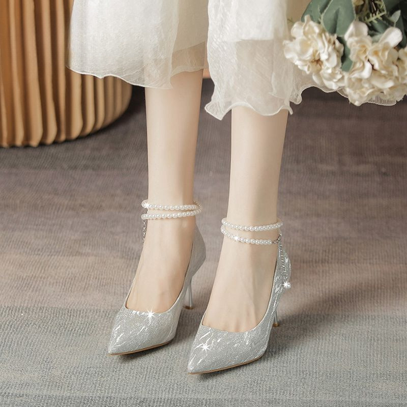 하이힐 실버 2025 년 새 메리 제인 펄, 결혼식 원피스 성인 의식 포인팅 발가락 웨딩 슈즈 싱글 레이어 슈즈스토어 가기