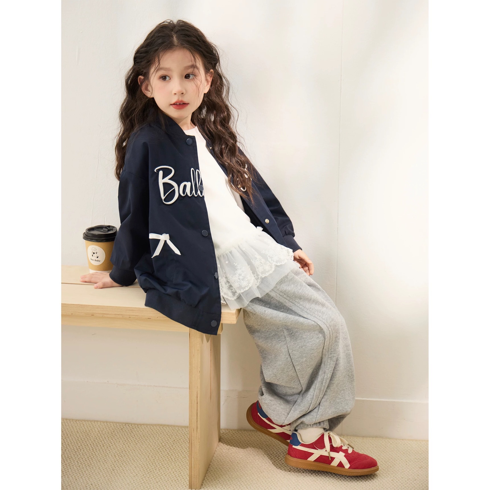 여아용 재킷 봄 가을 2025 신상 중대형 어린이용 리본 야구 재킷 어린이 자수 패션 재킷