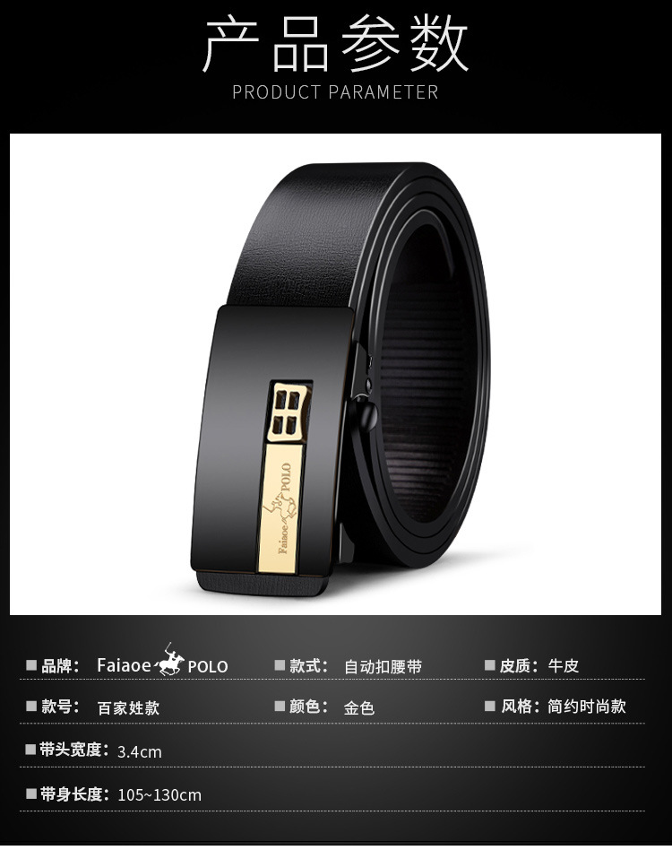 뉴 폴 정품 벨트 남성용 정품 가죽 이빨없는 자동 버클 벨트 그린 중년 패셔너블 퓨어 카우 히드와 남성용 바지