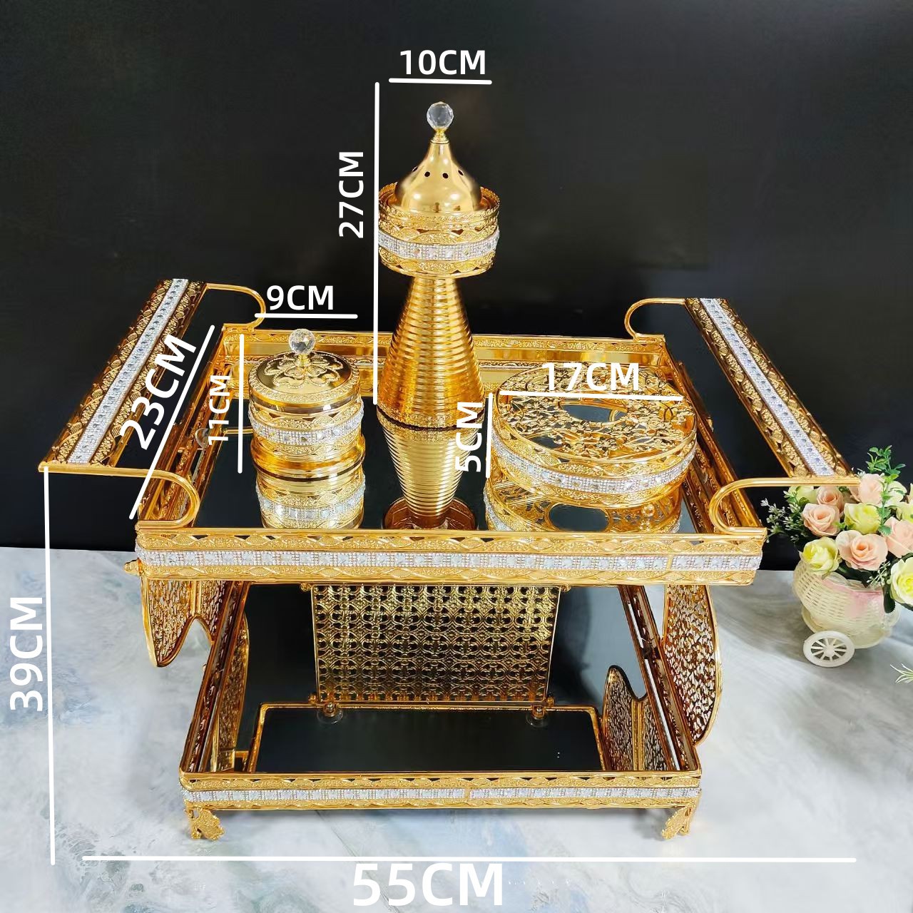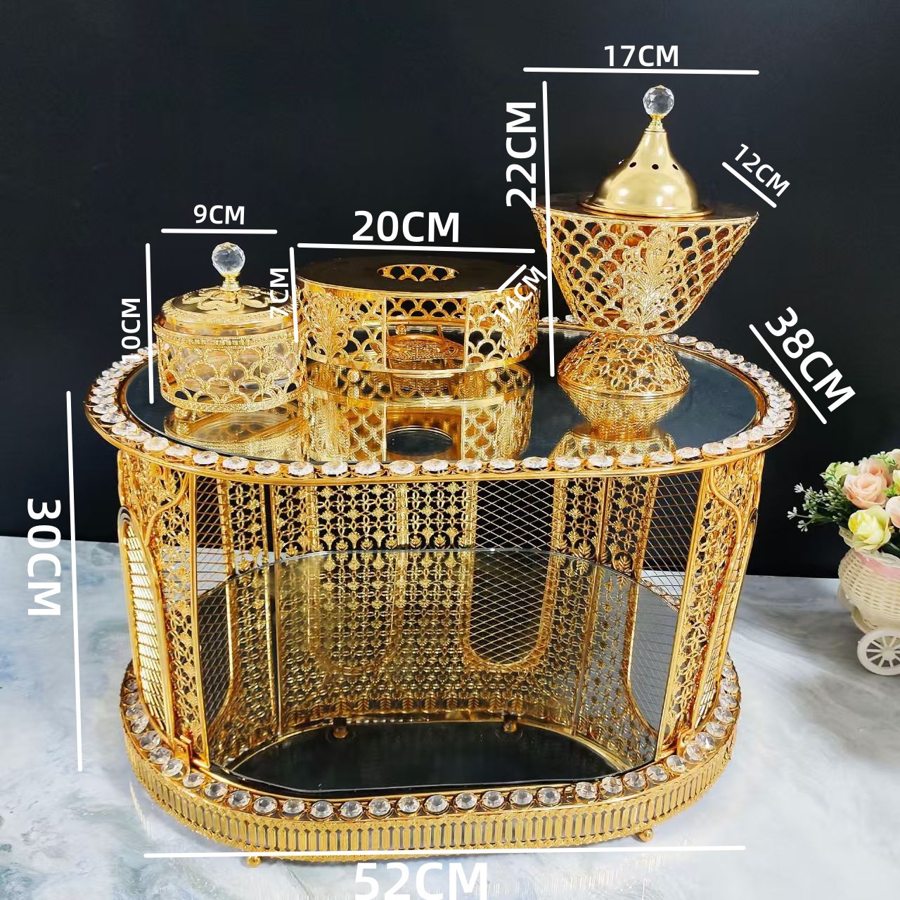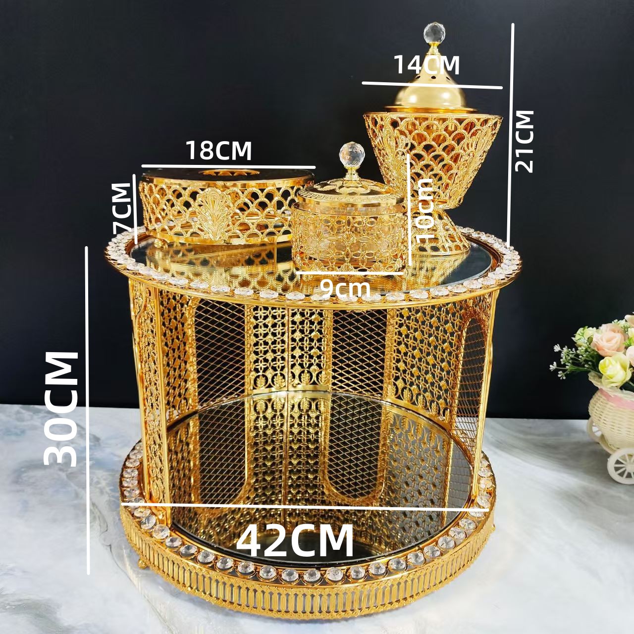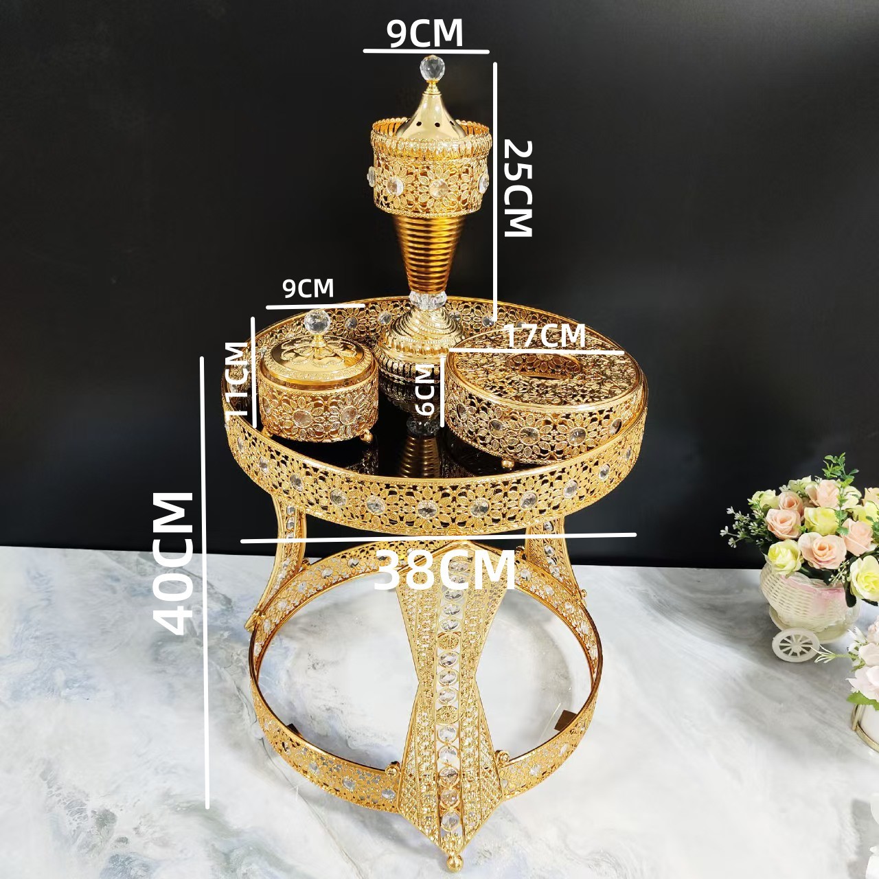 유럽식 식탁 펜던트 세트 5 성급 호텔 크리스탈 칼럼 금속 캔디 컵 그릴 세트 식탁 장식품