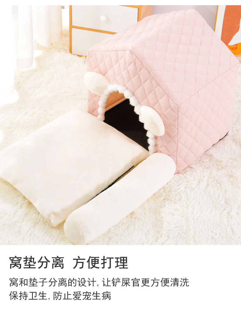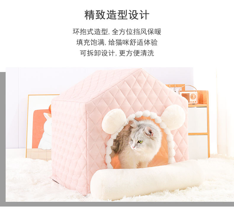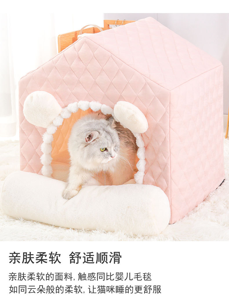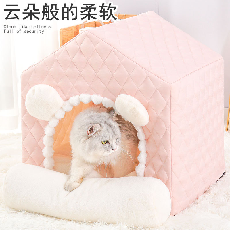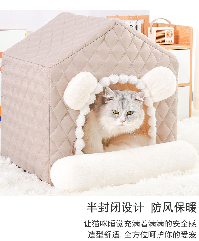 애완 고양이 집, 벨벳 안감으로 따뜻함 유지, 탈부착 가능한 반폐쇄형 강아지 고양이 집, 사계절 사용 가능스토어 가기
