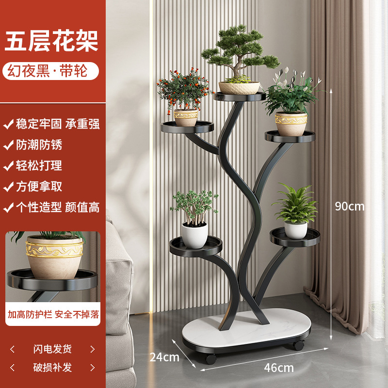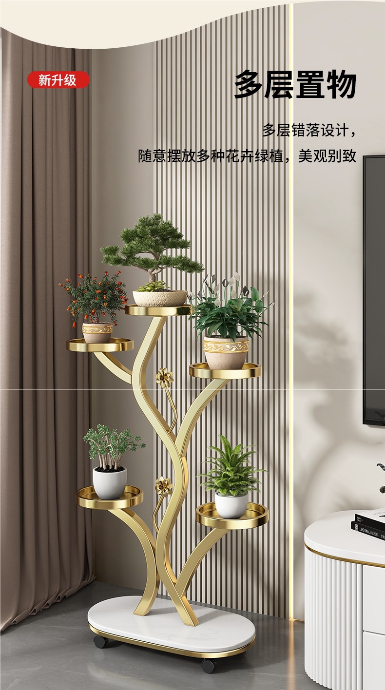 새로운 스타일의 꽃 선반 거실 바닥 스탠딩 발코니 연철 다육 저장 랙 멀티 레이어 모바일 브래킷 꽃 냄비 랙