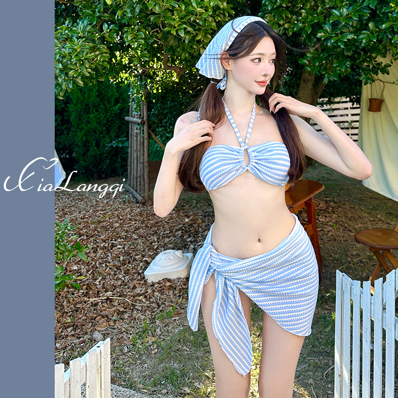2025 새로운 스타일 분할 수영복 여성 여름 달콤한 소녀의 비키니 4 피스 세트 살짝 뒤덮인 슬리밍 해변 휴가스토어 가기