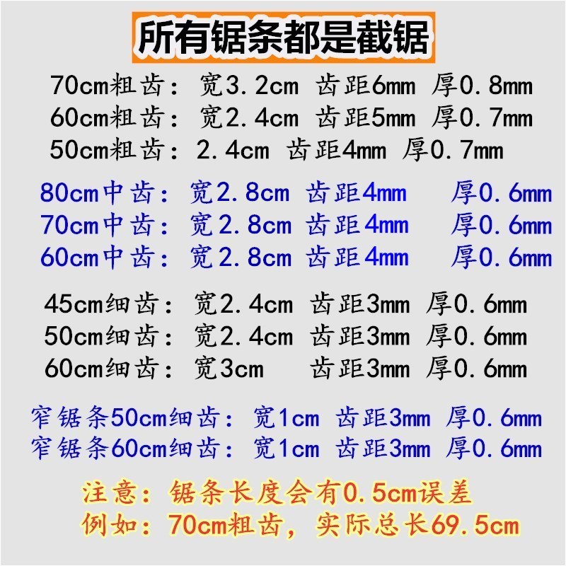 • 65cm 좁은 톱날과 거친 이빨(1팩)이 열려 있습니다.