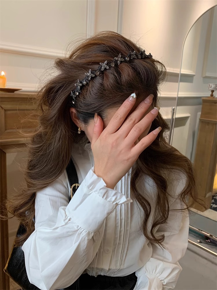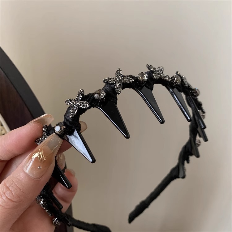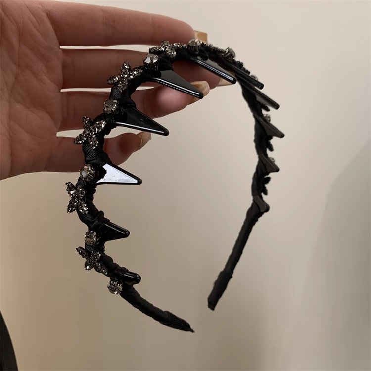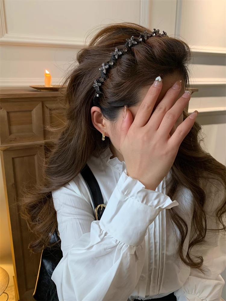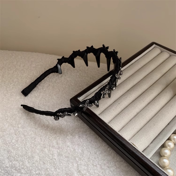 한국 고급 풀 다이아몬드 작은 나비 웨이브 헤어 밴드 2025 새로운 높은 두개골 상단 헤드 밴드 세척 얼굴 미끄럼 방지 머리핀 여성