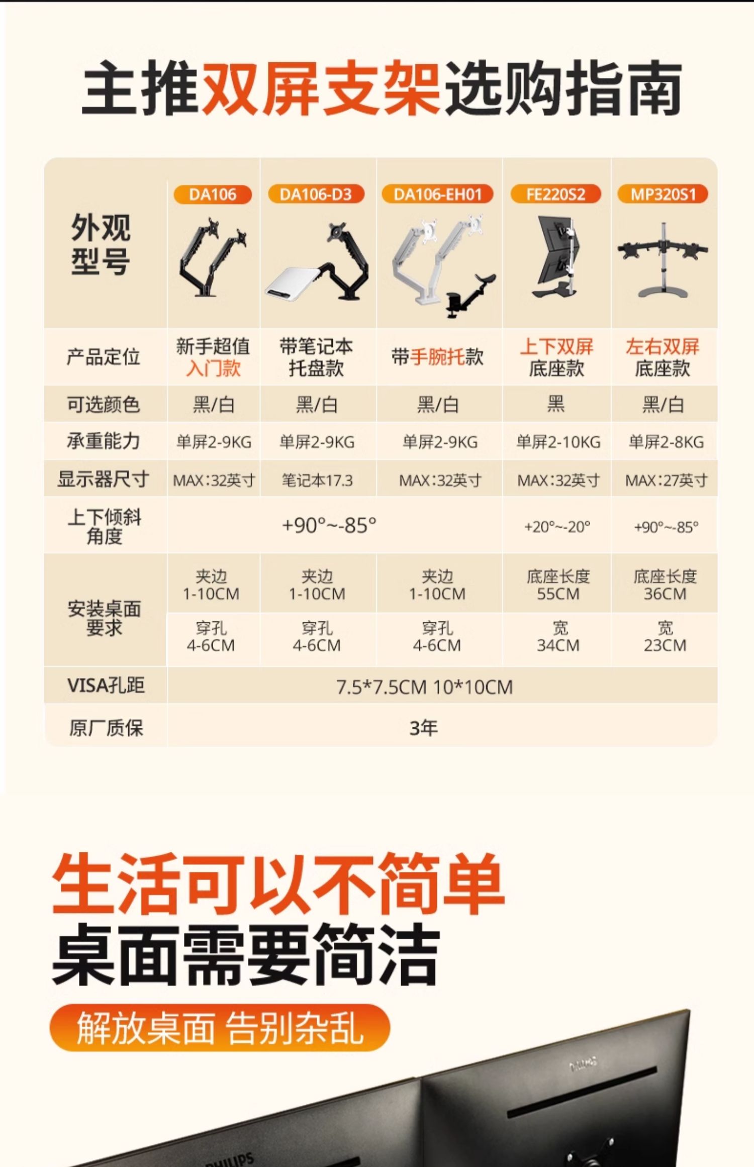 • 듀얼 스크린 + 손목 받침대 조합 스탠드| DA106-EH01