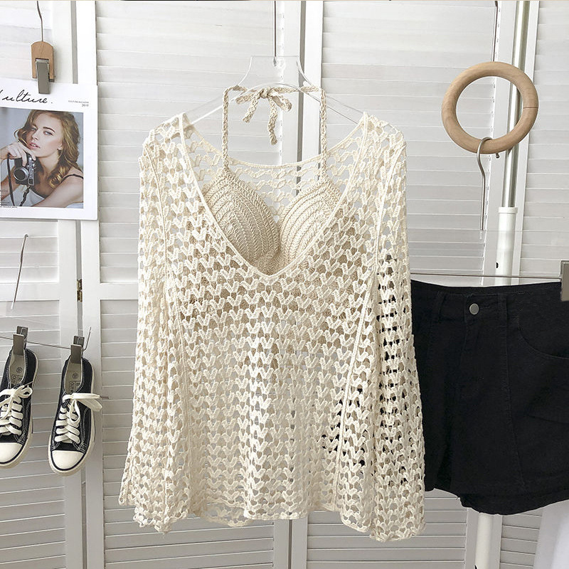 여름 세트 여자 2025 새로운 플러스 사이즈 여자 패션 속이 빈 탑 반바지 3 피스 세트 안에 스트랩 한국 버전스토어 가기