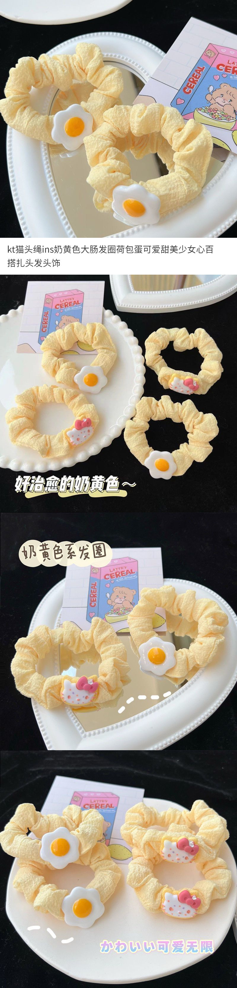 고양이 머리 밧줄 우유 노란색 대장 머리 반지 데친 달걀 귀여운 달콤한 소녀 심장 올 매치 헤어 티아라스토어 가기