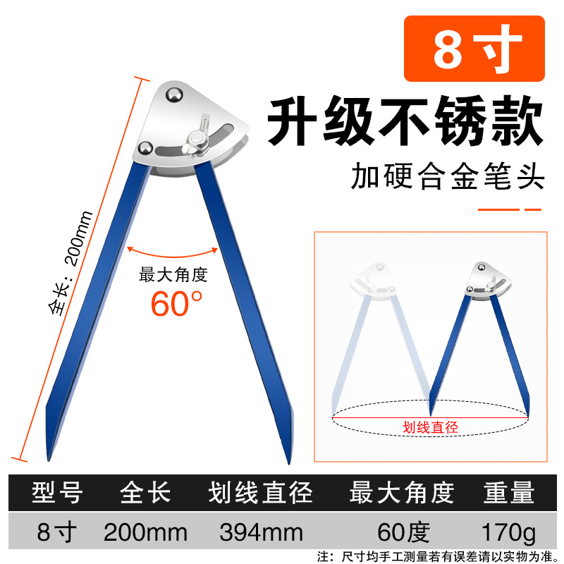 • 블루 8inch 합금 나침반(원 직경 390mm 그리기 가능) [업그레이드된 스테인레스 모델]