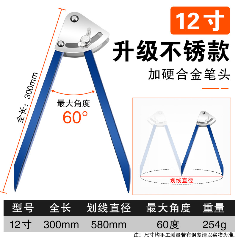 • 블루 12inch 합금 나침반(원 직경 580mm 그리기 가능) [업그레이드된 스테인레스 모델]