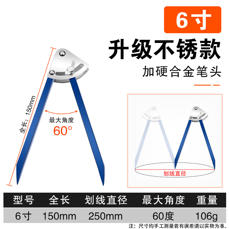 • 블루 6inch 합금 나침반(원형 직경 250mm 그리기 가능) [업그레이드된 스테인레스 모델]