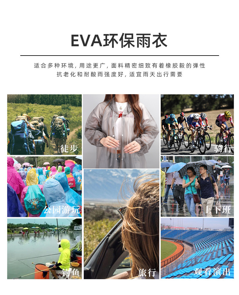 成人EVA雨衣非一次性束口时尚户外徒步连体雨披便携加厚雨衣