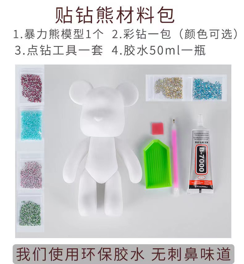 유체 곰 수제 diy 다이아몬드가 박힌 폭력적인 곰 흰 배아 유체 곰 비닐 인형 국경 간 대외 무역 도매 공급스토어 가기