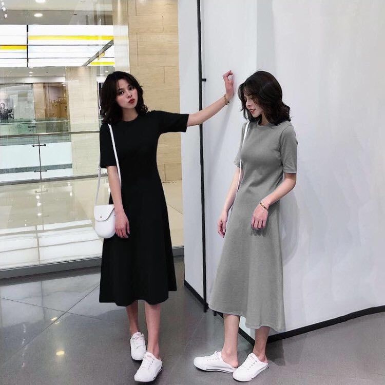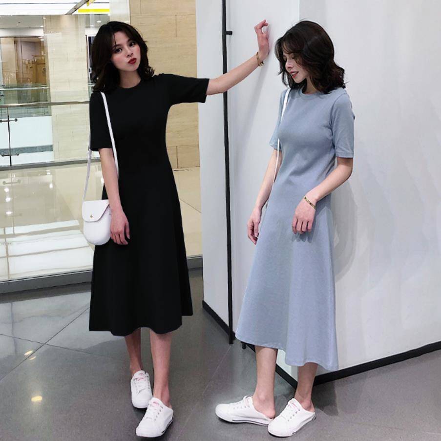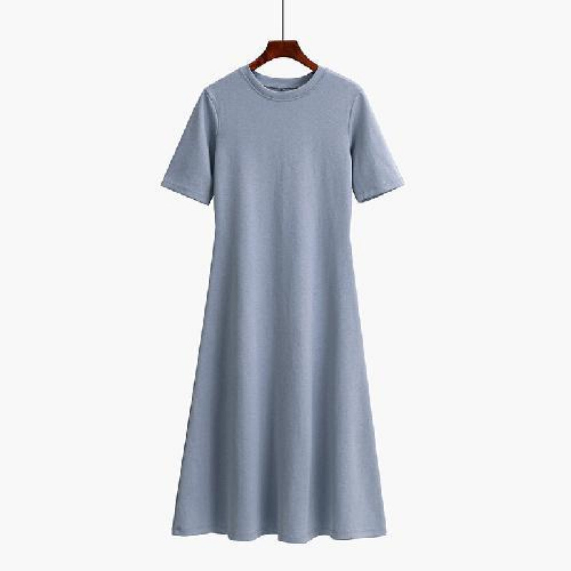 2025 새로운 여성 봄과 여름 캐주얼 크루 넥 짧은 소매 바닥 원피스 티셔츠 롱 스커트 여성의 다재다능한 A 라인 스커트스토어 가기