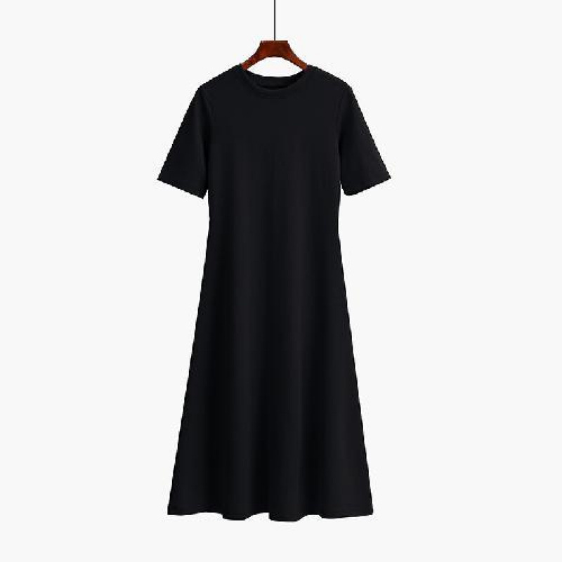 2025 새로운 여성 봄과 여름 캐주얼 크루 넥 짧은 소매 바닥 원피스 티셔츠 롱 스커트 여성의 다재다능한 A 라인 스커트