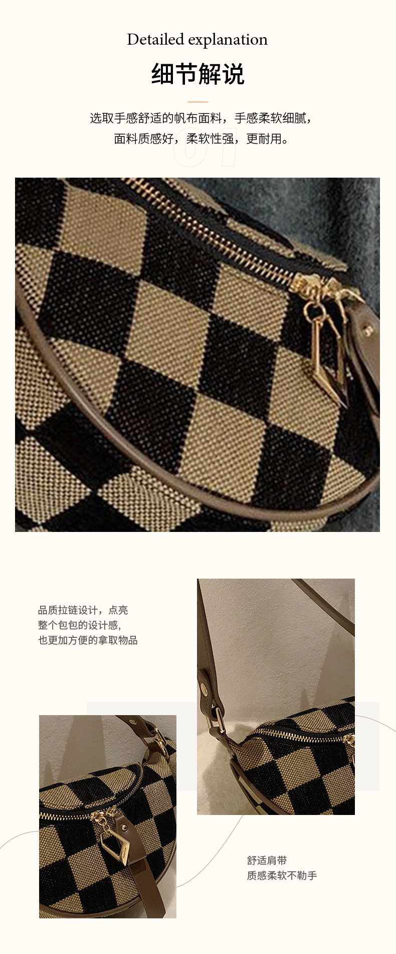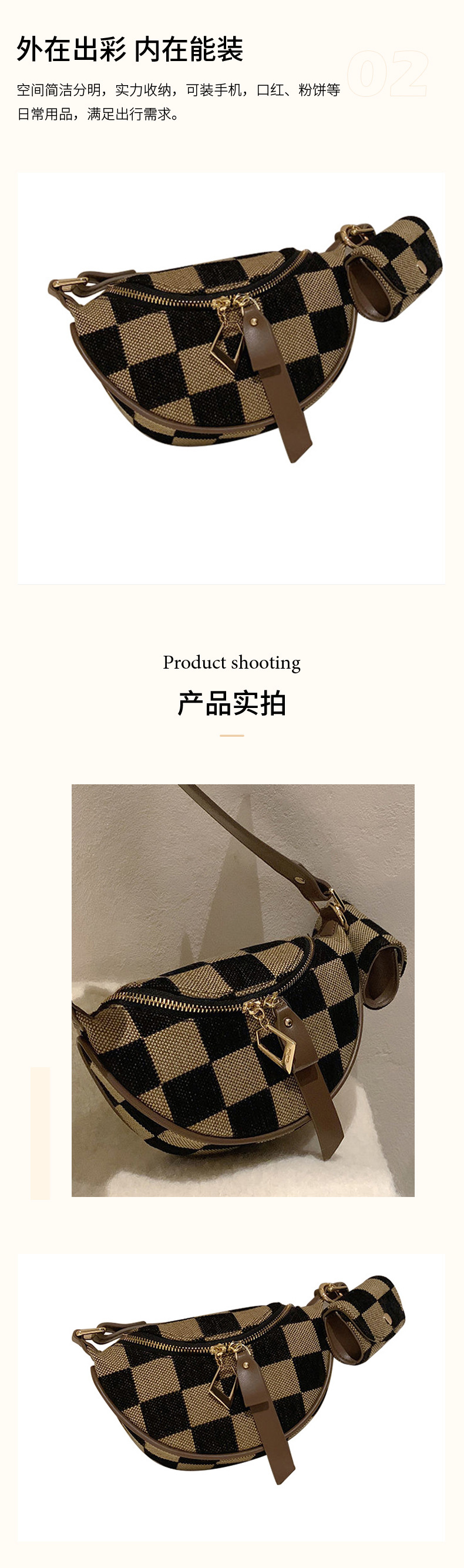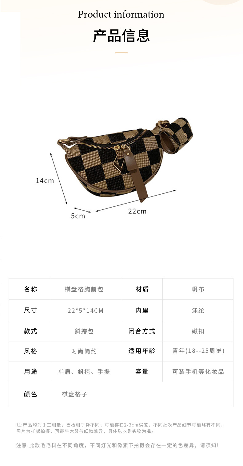 바둑판 가슴 가방 여성의 2025 봄 새로운 패션 대비 컬러 체크 무늬 허리 가방 우아한 통근 싱글 어깨 크로스 바디 백스토어 가기