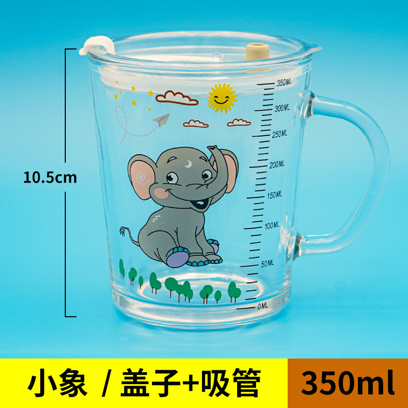 Ins 스타일 컵 대용량 아침 식사 컵 오트밀 코끼리 400ml 스케일 뚜껑 밀짚 어린이 유리 물 컵스토어 가기