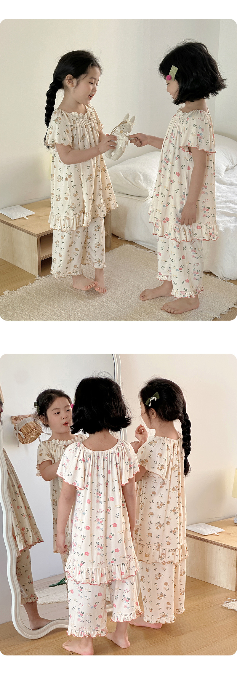 빵 토끼 2025 여름 새 얼음 도라에몽 소녀 나이트 드레스 세트 한국 느슨한 공주 소녀 홈 옷