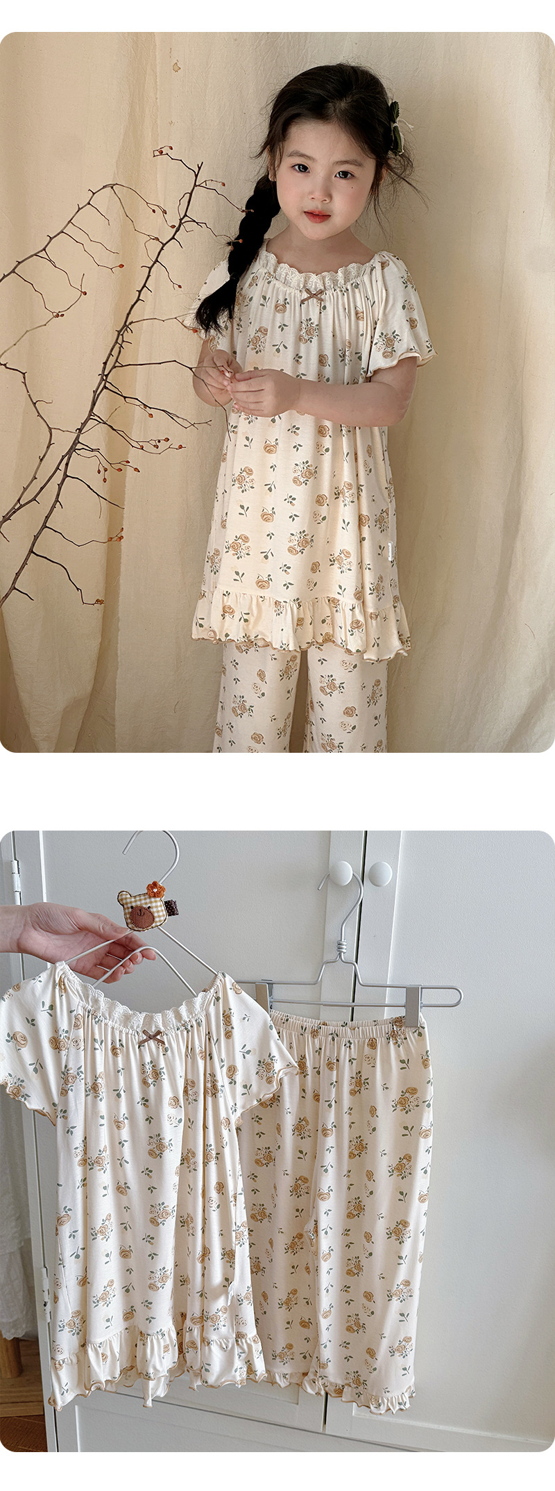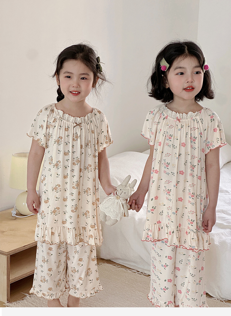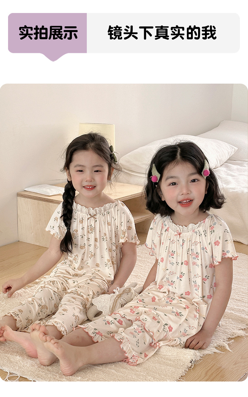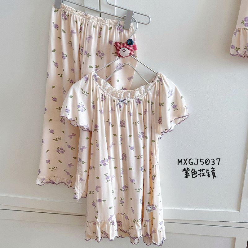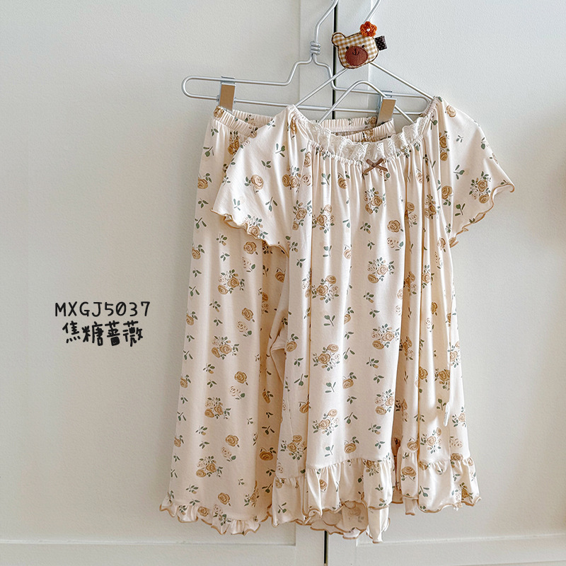 빵 토끼 2025 여름 새 얼음 도라에몽 소녀 나이트 드레스 세트 한국 느슨한 공주 소녀 홈 옷스토어 가기