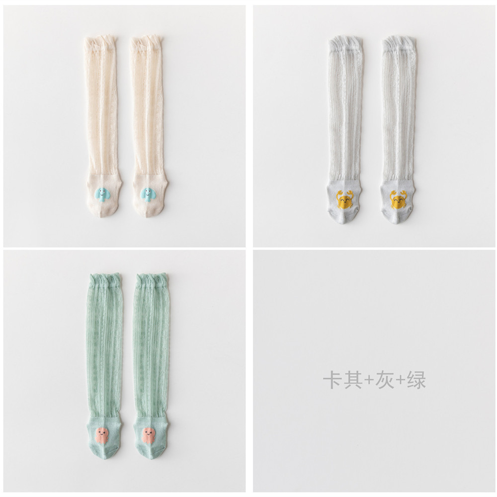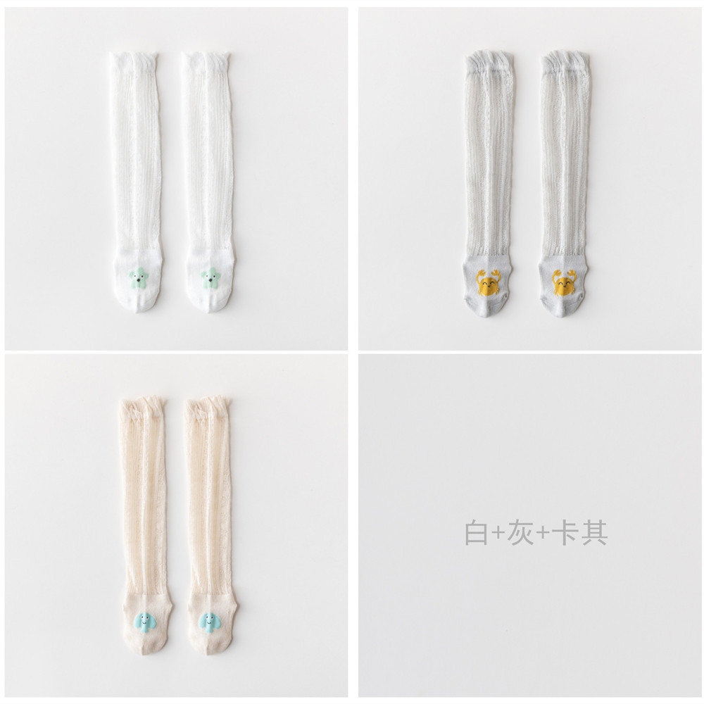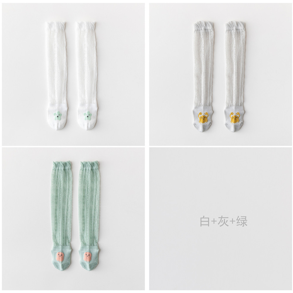 (3 더블 팩) 여름 아기 양말 메쉬 얇은 신생아 만화 아기 안티-모기 양말 무릎 긴 양말