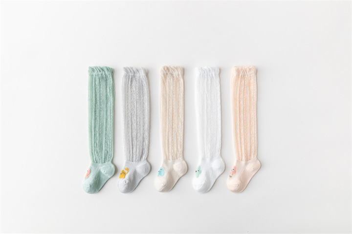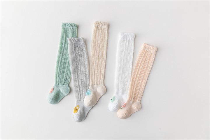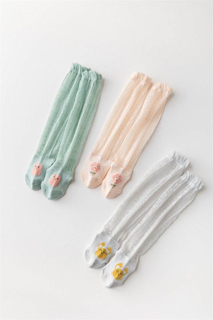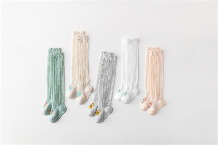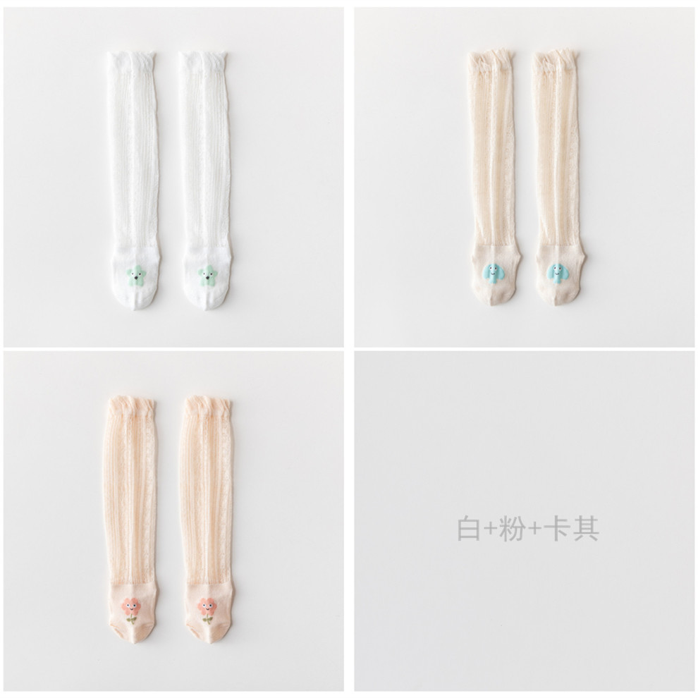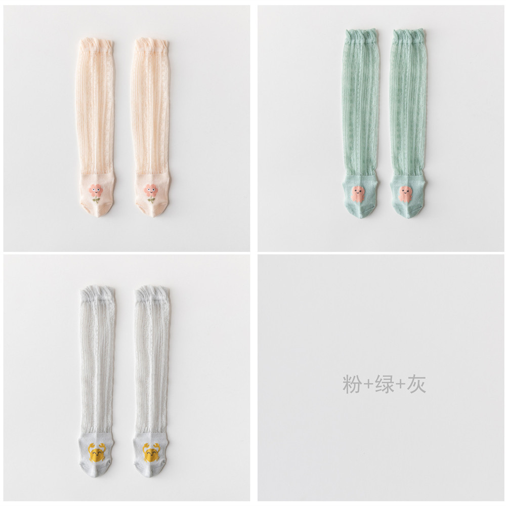(3 더블 팩) 여름 아기 양말 메쉬 얇은 신생아 만화 아기 안티-모기 양말 무릎 긴 양말