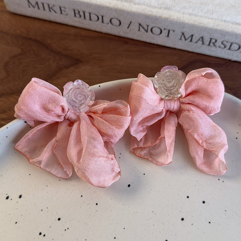 프랑스 분위기 감각 쉬폰 활 장미 꽃 귀걸이 슈퍼 페어리 귀걸이 틈새 디자인 센스 귀걸이 새로운 폭발스토어 가기