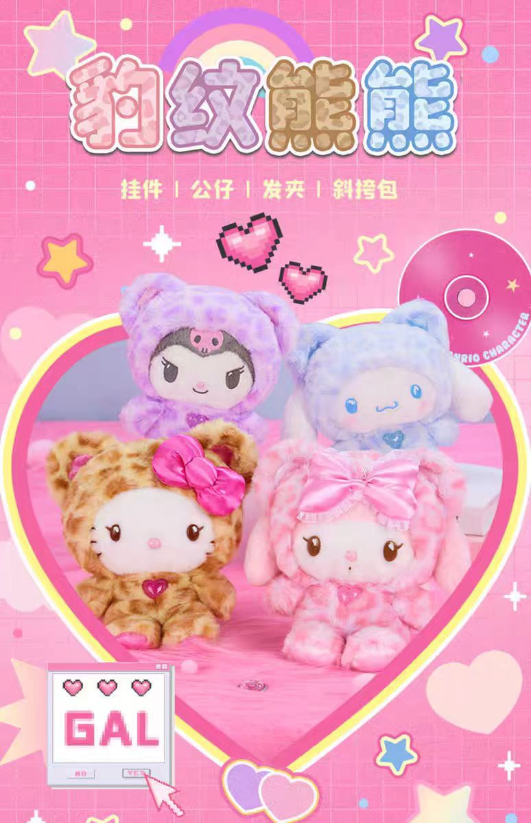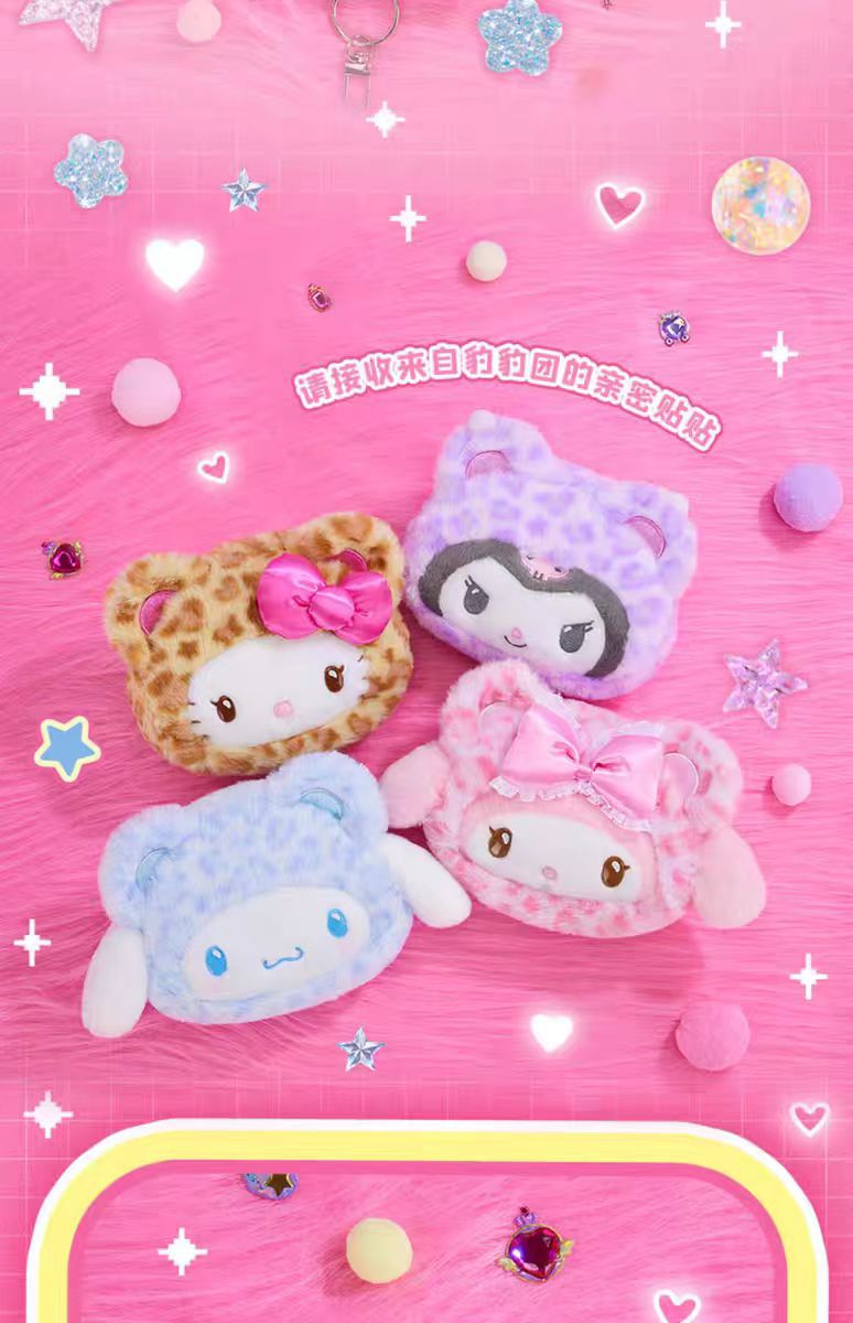 헬로키티 라떼 레오파드 프린트 키체인 가방 펜던트 산리오 귀여운 펜던트 봉제 인형 일본식