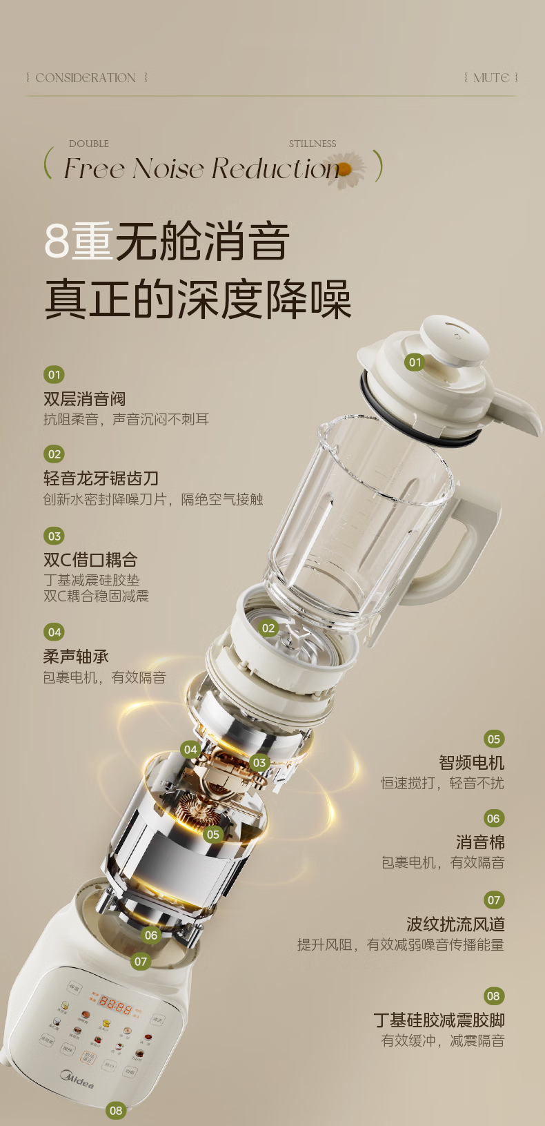 Midea 잠자는 벽 깨는 기계 MJ-PB10S39 가정용 조용한 빛 소리 보충 식품 다기능 요리 주스 두유 기계