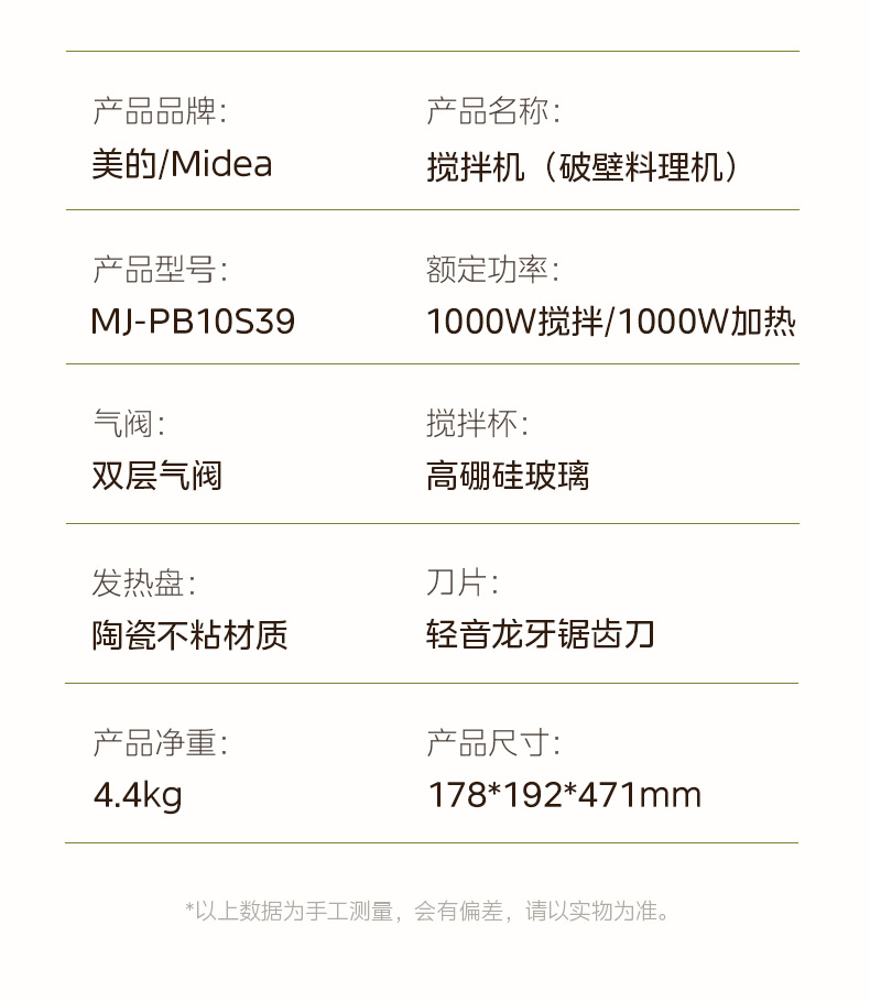 Midea 잠자는 벽 깨는 기계 MJ-PB10S39 가정용 조용한 빛 소리 보충 식품 다기능 요리 주스 두유 기계스토어 가기